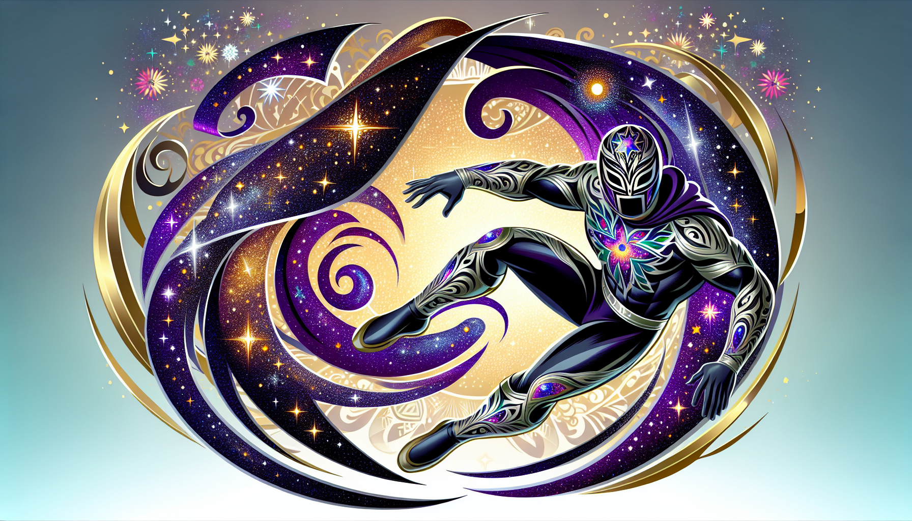 Celestial Slinger is a lithe and agile luchador with a physique built for acrobatics. Their throws are characterized by their parabolic precision and effortless grace. They possess an uncanny ability to read the wind, allowing them to execute perfect shots even in challenging conditions. Their movements are fluid and mesmerizing, often leaving spectators in awe.