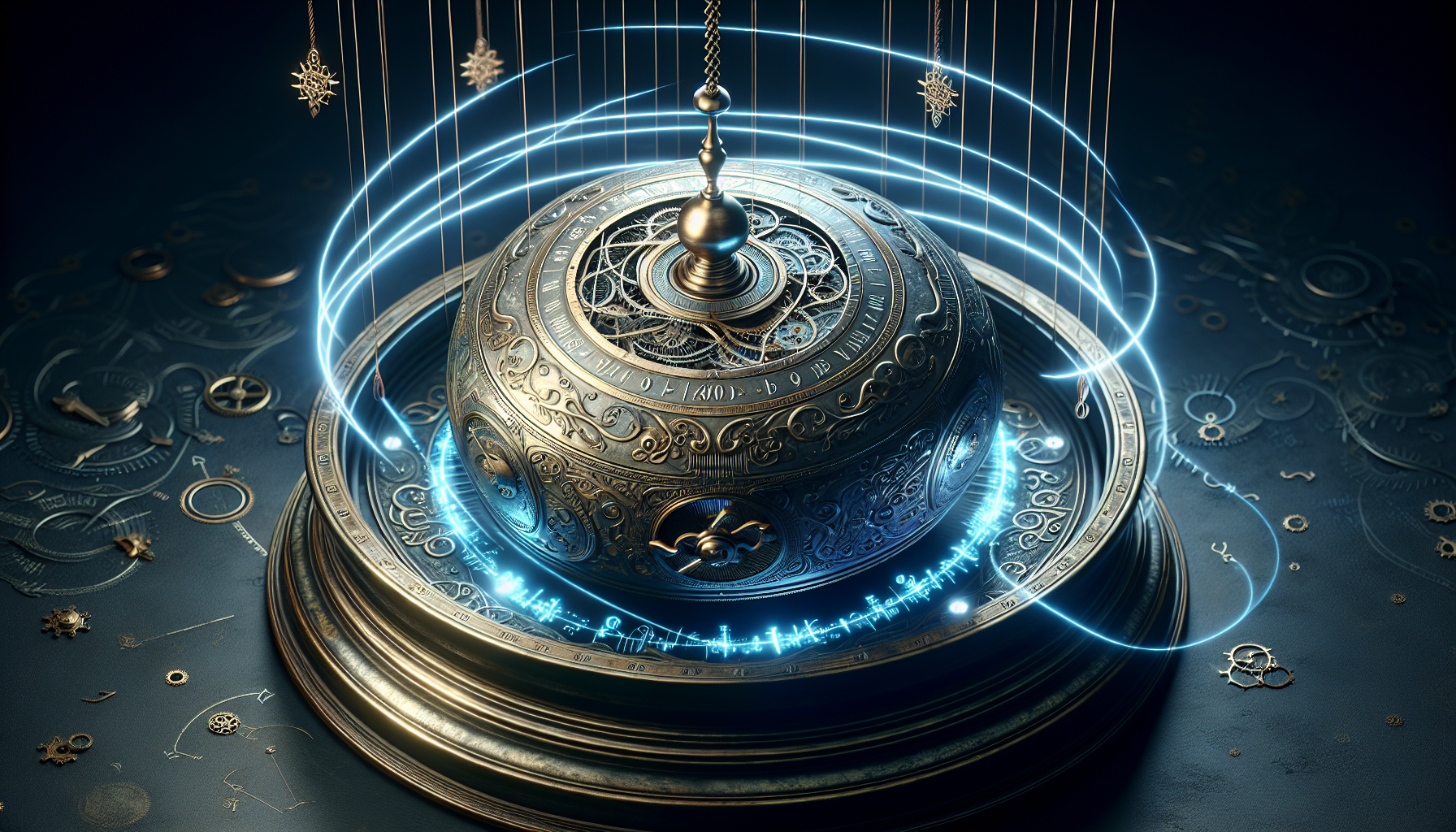 The Resonant Pendulum is a finely crafted device made of brass and infused with magical energy. It emits a constant, soothing hum that stabilizes nearby machinery. The Pendulum's vibrations can detect and correct imbalances in both mechanical and magical systems.