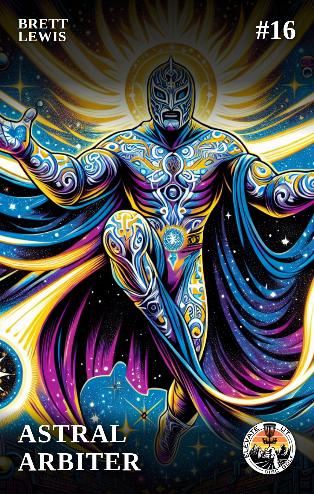 The Astral Arbiter was born from a cosmic event where a shooting star collided with a disc golf basket during a championship match. This celestial energy merged with the spirit of a legendary luchador referee, creating a being dedicated to maintaining fairness and sportsmanship in the skies. Now, it watches over the Launcho Libre Open, ensuring that all matches are conducted with honor and skill.