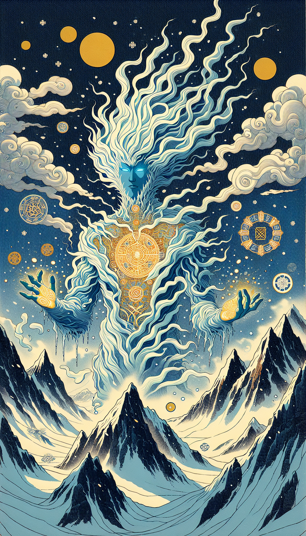 The Frostveil Mystic originated from the first human to discover the Yeti's existence centuries ago. Overwhelmed by the encounter, the explorer's spirit merged with the mountain's mystical energy, becoming a guardian of the Yeti's secrets. Now, it manifests during blizzards, guiding lost travelers away from sacred sites while maintaining the delicate balance between humans and the legendary creature.