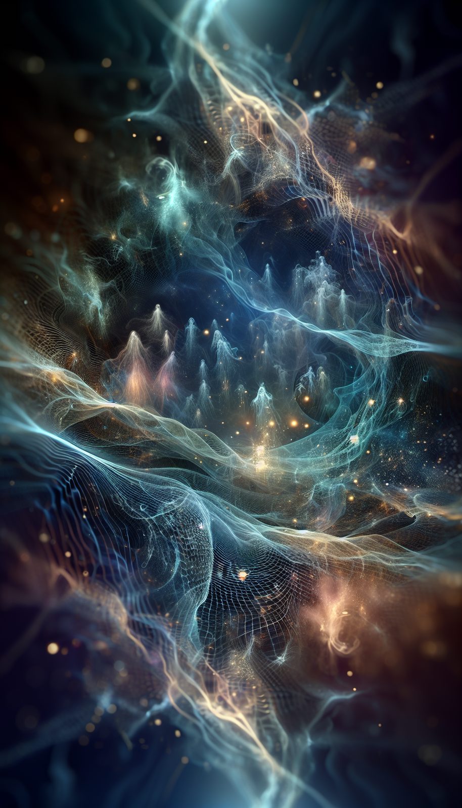 The Spectral Weave is an ethereal entity with no fixed physical form, existing as a shimmering, translucent web of energy that connects all cryptid lore. It can manifest in various forms, often appearing as a glowing, intricate network of threads that pulse with the energy of ancient stories. The Weave is intangible, yet it can influence the physical world through the power of collective belief and the strength of cryptid legends.