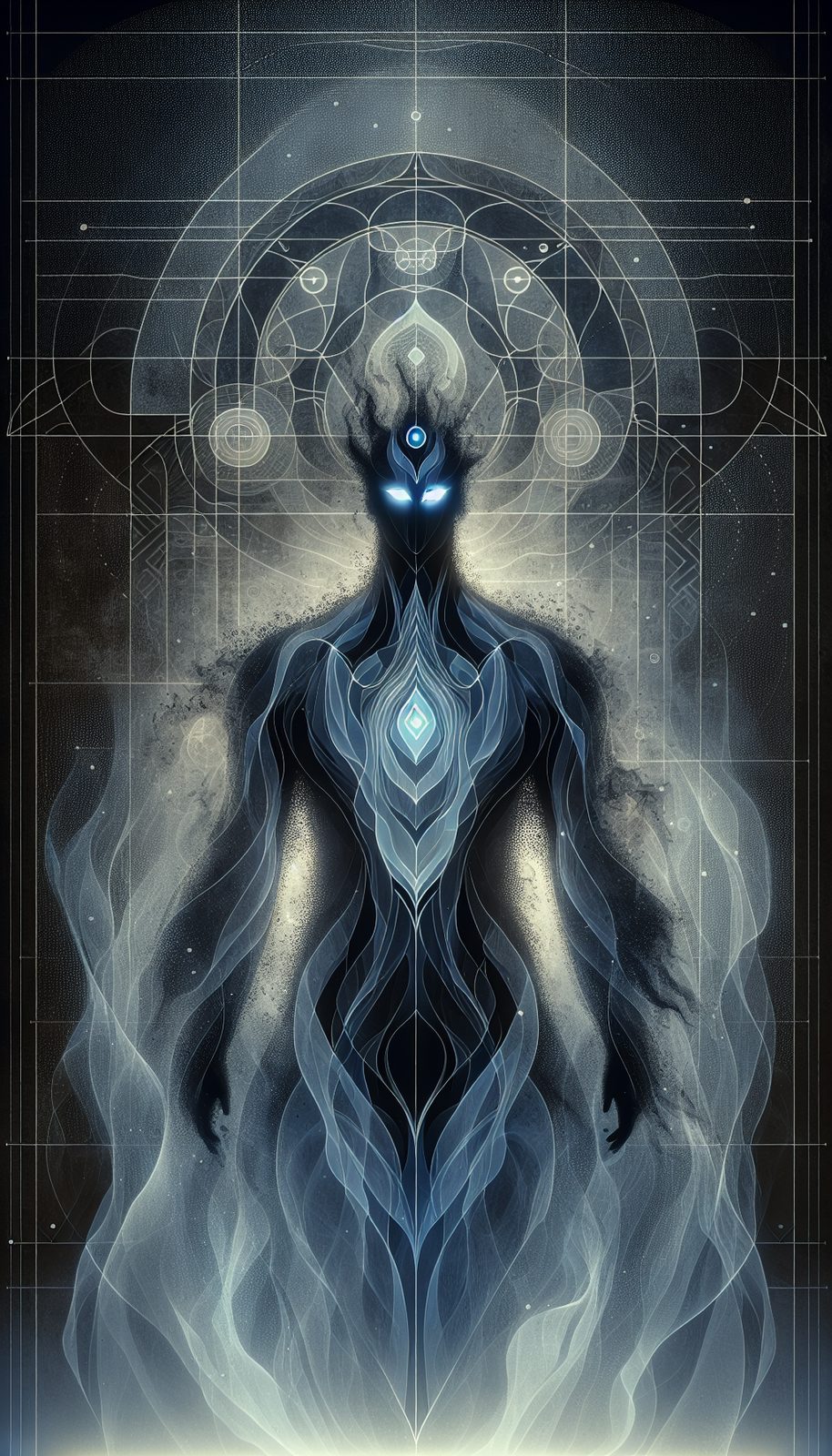 The Veilbound Watcher possesses an ethereal form that shifts between visibility and invisibility, embodying the boundary it protects. It has the ability to traverse between realms, appearing as a shadowy figure with glowing eyes that can see through the veil. Its presence is often accompanied by a faint, otherworldly hum, signaling its watchful gaze.