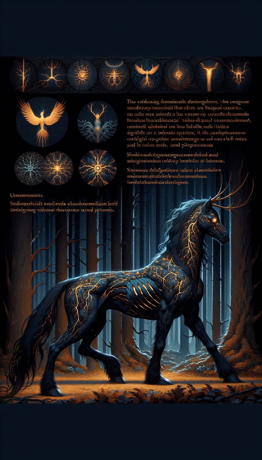 The Amalgam Tikbalang possesses unparalleled shapeshifting abilities, capable of manifesting characteristics of any cryptid while always retaining subtle equine features—elongated limbs, occasional hoof-like appendages, or a distinctive horse-like gait. It exists primarily in liminal spaces—forest boundaries, twilight hours, crossroads, and thresholds between the known and unknown—where reality is most malleable. When encountered, it temporarily distorts perception, causing travelers to lose their way while simultaneously granting fleeting glimpses into the interconnected web of cryptid knowledge, making it both feared for its disorienting presence and sought after for its wisdom.