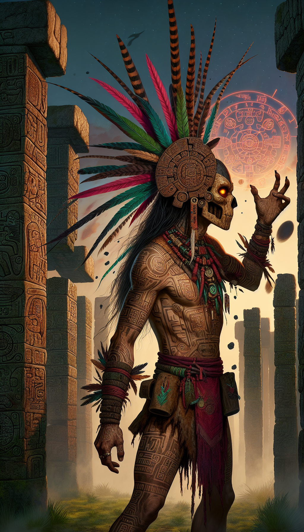 Possesses the limited ability to adopt animal senses—the keen smell of a wolf, the sharp vision of an eagle, or the acute hearing of a bat—though maintaining these borrowed abilities drains their energy rapidly. Their ceremonial mask, adorned with feathers and animal teeth, serves as a focus for their tracking magic, allowing them to perceive the residual energy signature left by the Chupacabra's passage. Through ancient rituals performed at dawn and dusk, they can commune with the spirits of the land to reveal hidden paths and concealed lairs that would remain invisible to conventional tracking methods.