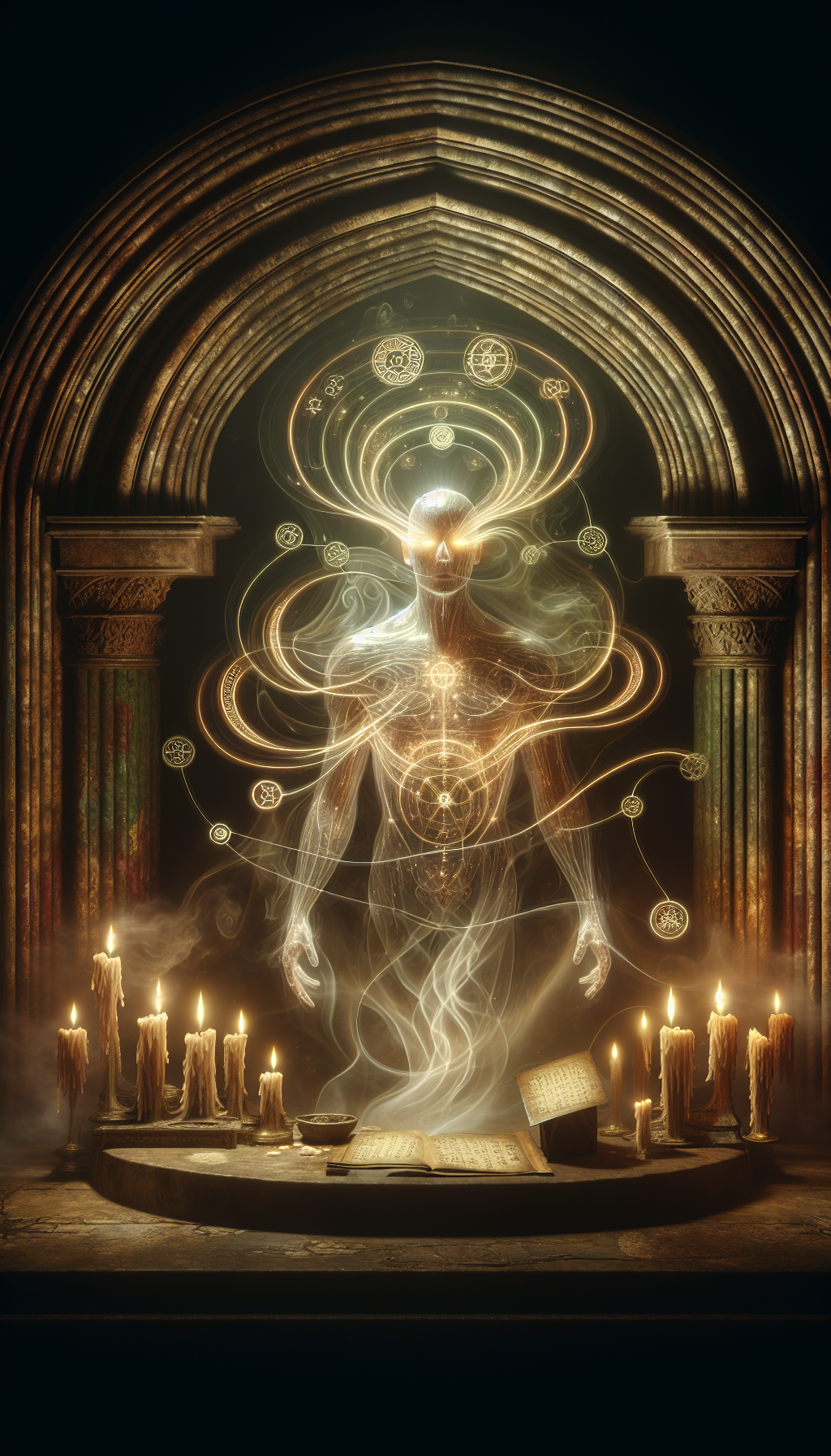 The Ritual Specter exists as a semi-corporeal entity, able to phase through solid objects but still capable of interacting with the physical world. It emits an eerie glow and leaves behind traces of arcane energy. The specter is drawn to sites of powerful magic and can manipulate ritual components from a distance.