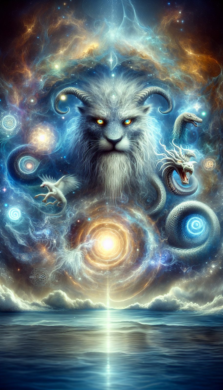The Cosmic Chimera is said to have emerged from the primordial chaos that birthed the first cryptids. As the universe expanded, so did its form, absorbing the essence of every cryptid it encountered. Over millennia, it became a living tapestry of cryptid lore, a guardian of their collective history and a bridge between their diverse realms.