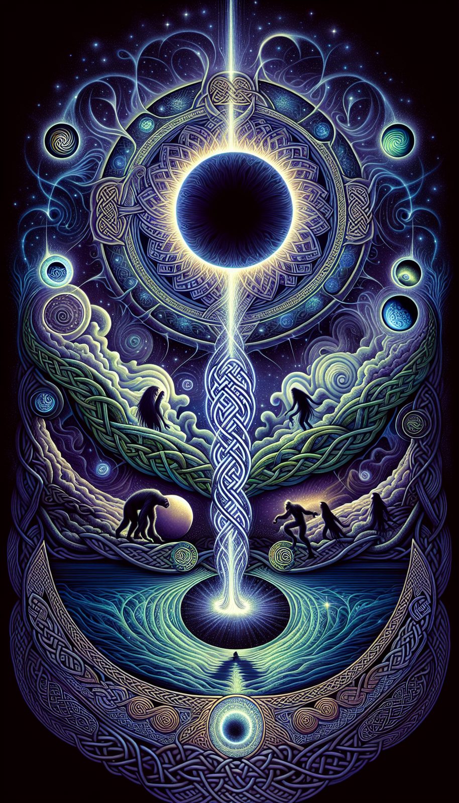 The Eclipsed Thread was born from the first eclipse witnessed by humanity, a moment when the veil between worlds was thinnest. It emerged as a spectral entity, tasked with weaving together the stories of cryptids across time and space.