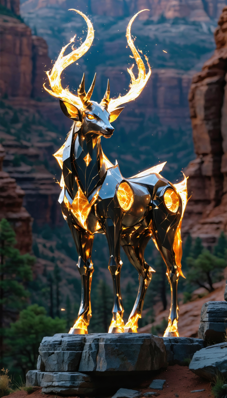 The Canyon Karkadann was born from the union of ancient rock spirits and the primal energy of the Great Plains. Legend says that when the first Thunderbird's lightning struck the deepest canyon, the resulting energy fused with the stone to create this majestic creature. For centuries, it has served as a guardian of the canyons, protecting the ancient secrets hidden within the rock formations.