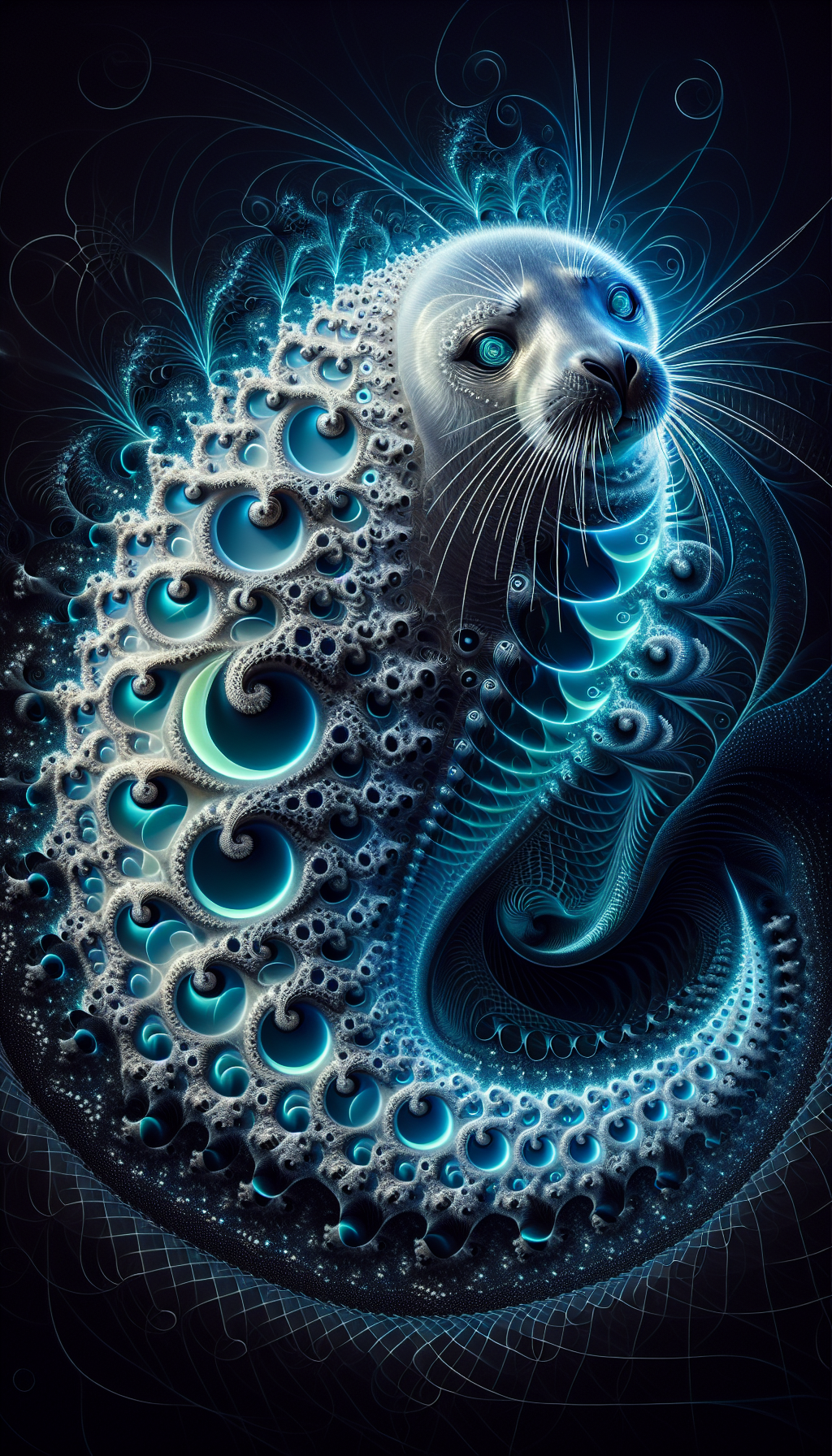 Giant seal form with bioluminescent Celtic knotwork scars that shift with tides, can manifest partial transformations, leaves enchanted tide pools that reveal cryptid histories when interacted with during specific moon phases.