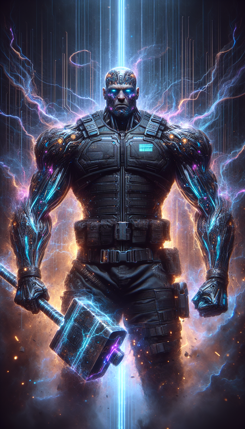 Possesses augmented strength from military cyber-enhancements and complete pain suppression. His customized sledgehammer contains a hidden plasma charge mechanism that superheats on impact. Wears a reinforced leather trenchcoat lined with ballistic weave and sports infrared combat goggles. His most dangerous trait is an absolute refusal to back down from any fight.