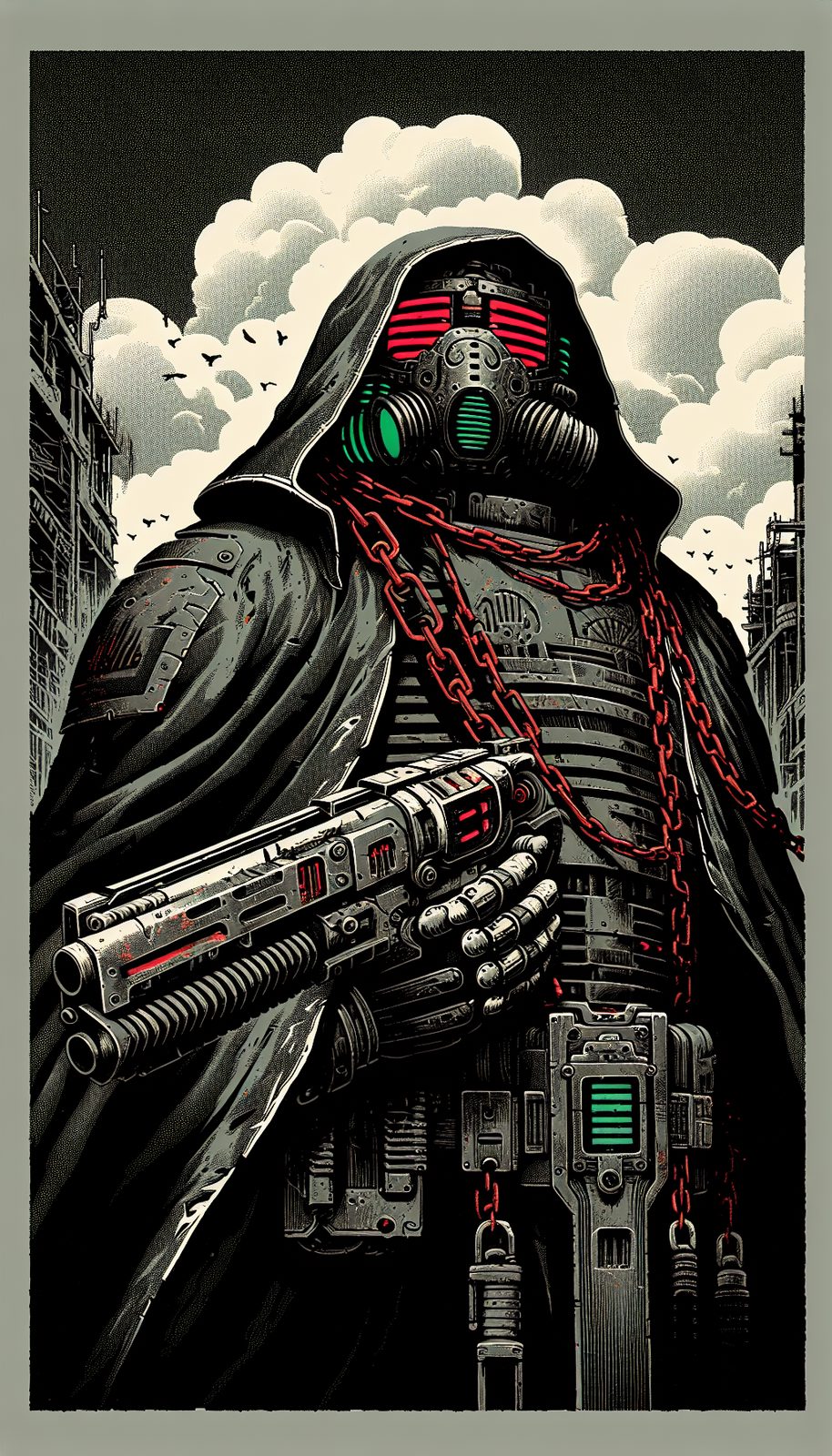 Once a respected lawman in the last functioning city-state, the Wasteland Judge watched as corrupt officials sold out humanity to the corporate overlords. When they executed his family as 'collateral damage,' he took to the ruins with his customized shotgun gavel, declaring himself the last true justice in a world gone mad.