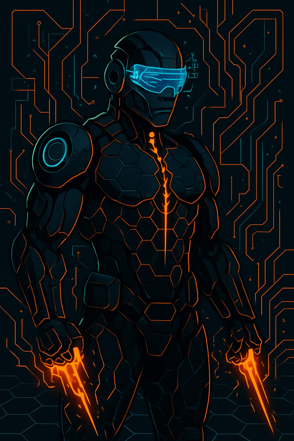 Glowing Hex-Armored Cyber-Commando Disc Hunter
