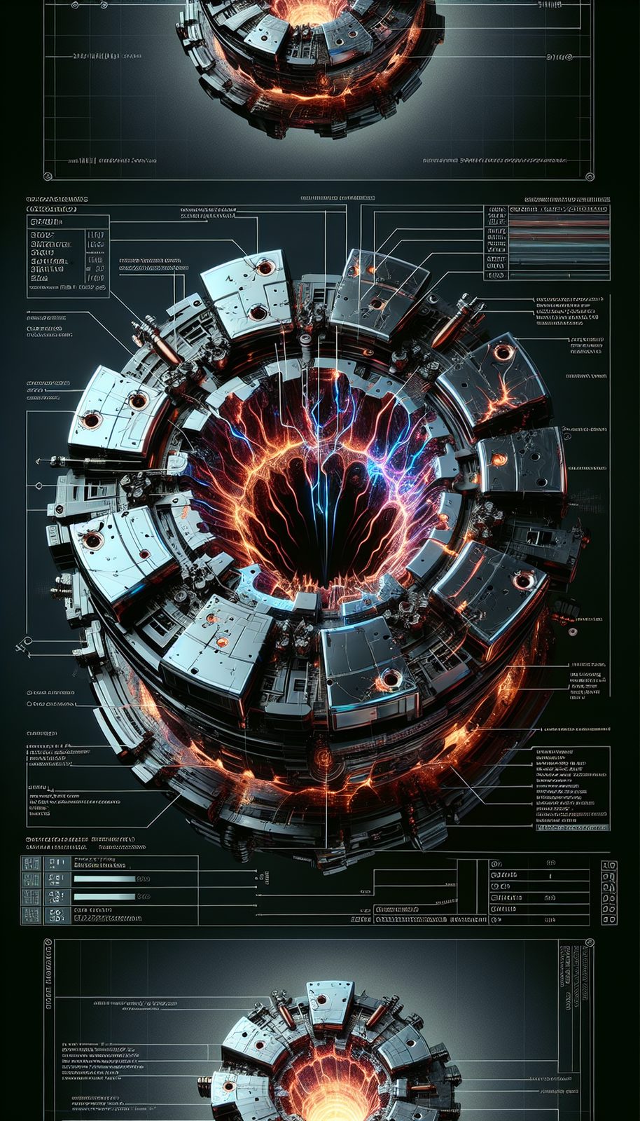 Molten steel core encased in fractured hologram glass with visible faction insignias burning beneath surface. Emits EMP bursts disabling nearby faction tech and absorbs material from defeated opponents' gear, constantly evolving its form