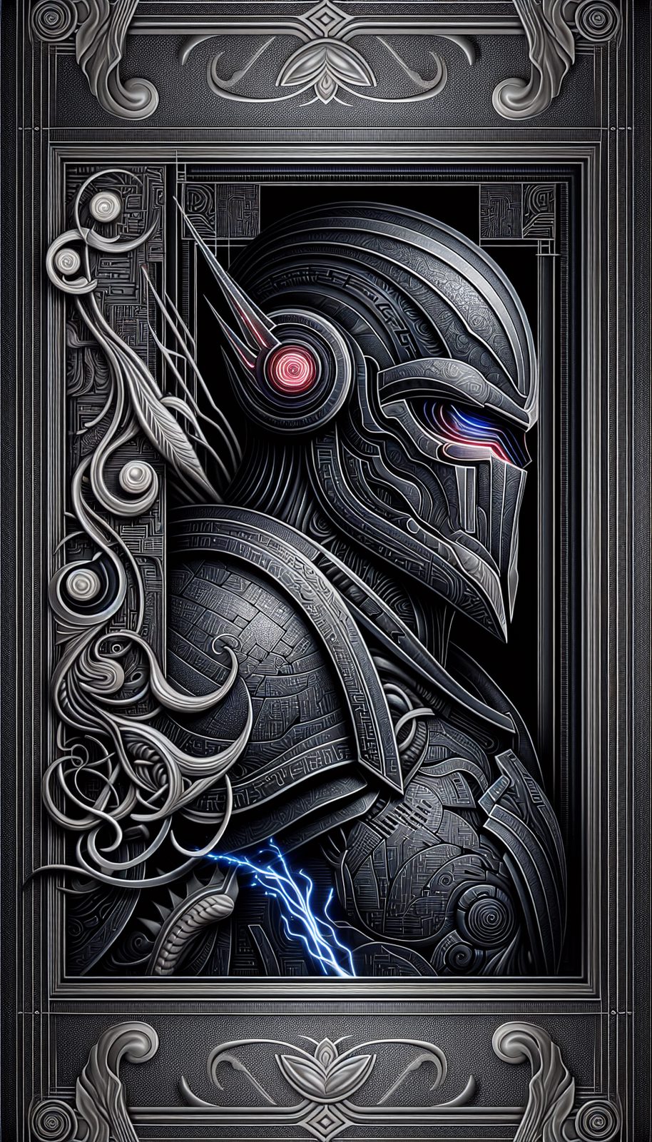 Forged from the encrypted corruption files of seven dissolved governments, this sentient justice algorithm manifests through stolen military neural interfaces and hacker-coded execution protocols to hunt unpunished war criminals across faction lines.