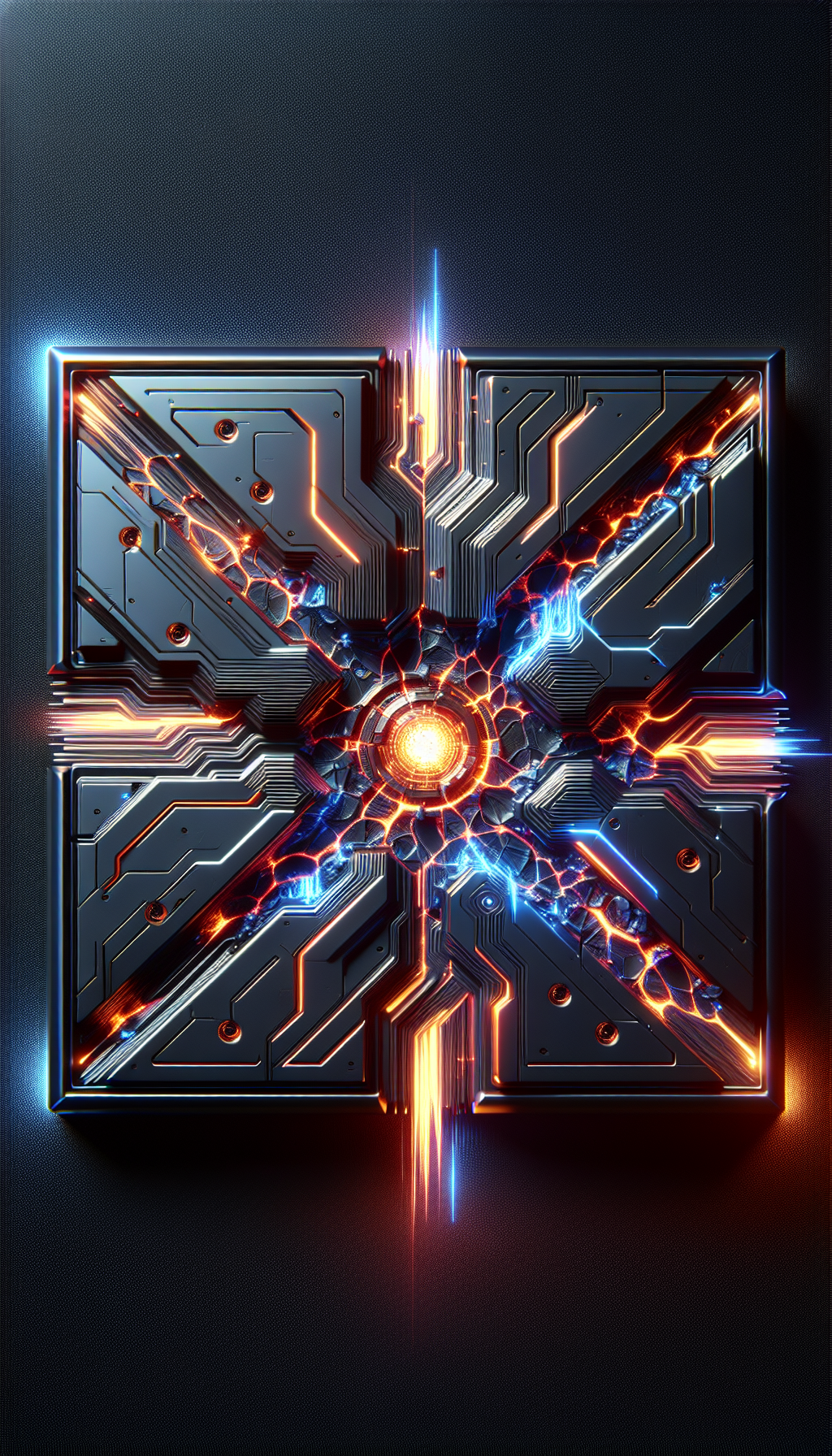 Heat-warped titanium alloy with glowing lava fissures, holographic smoke emissions, and reverse-side containment runes that pulse during thermal surges