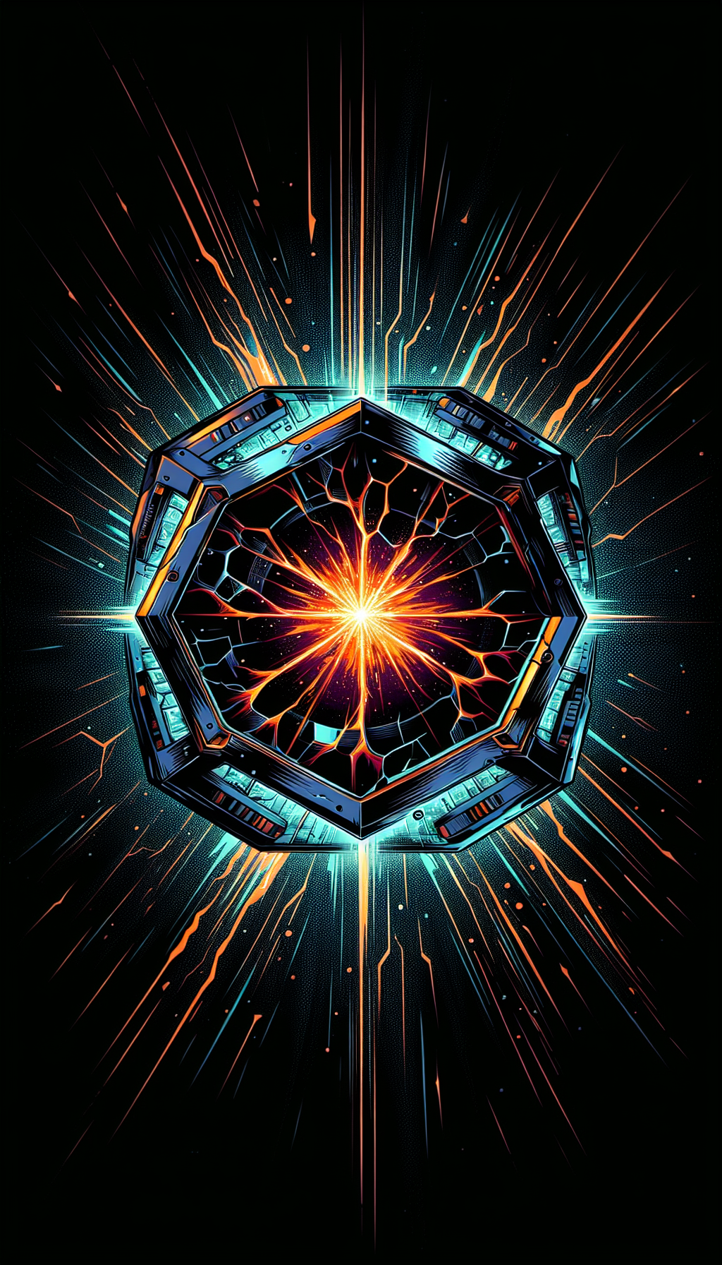 Crackling plasma core housed in stolen military capacitor casing, phase-shifting metallic alloy body that bypasses physical barriers, surface covered in glowing circuit tattoos mapping its ever-expanding power domain.