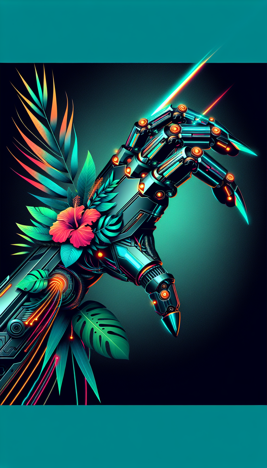 Plasma-charged claw gauntlet with holographic targeting matrix, neural feedback nodes, and electromagnetic disruptors. Self-repairing alloy housing contains unstable energy core that crackles with blue-white arcs.