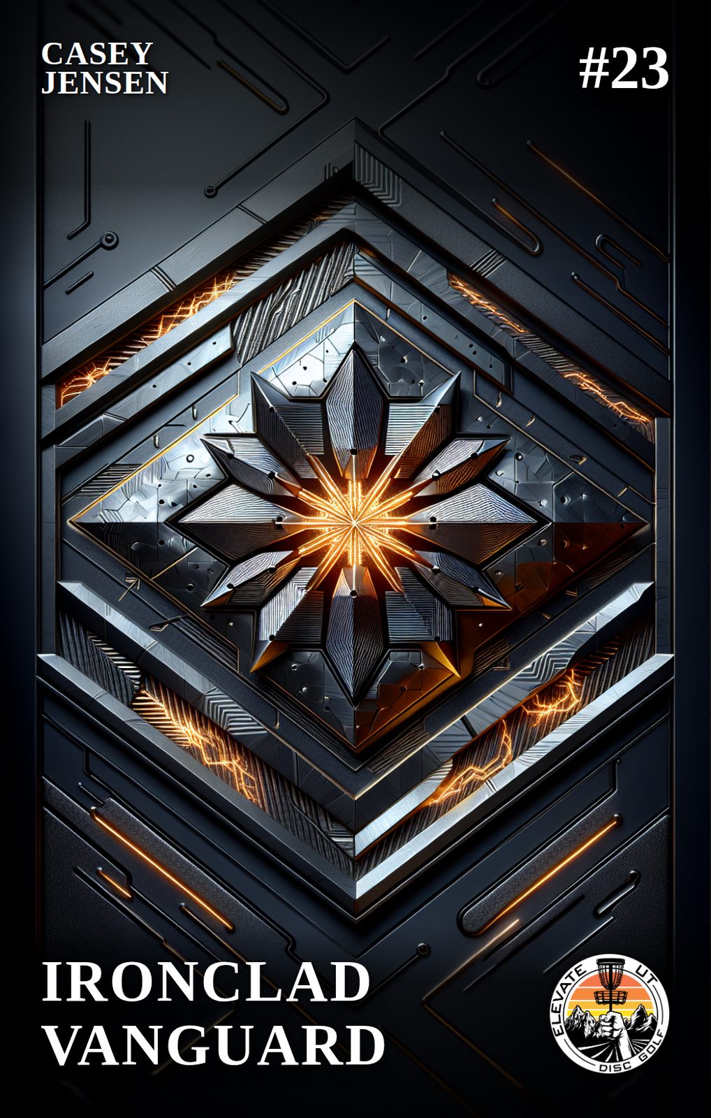 Hammered titanium composite with bullet impact weathering, pulsating data streams through fracture lines, self-repairing nano-structure that assimilates new tech fragments