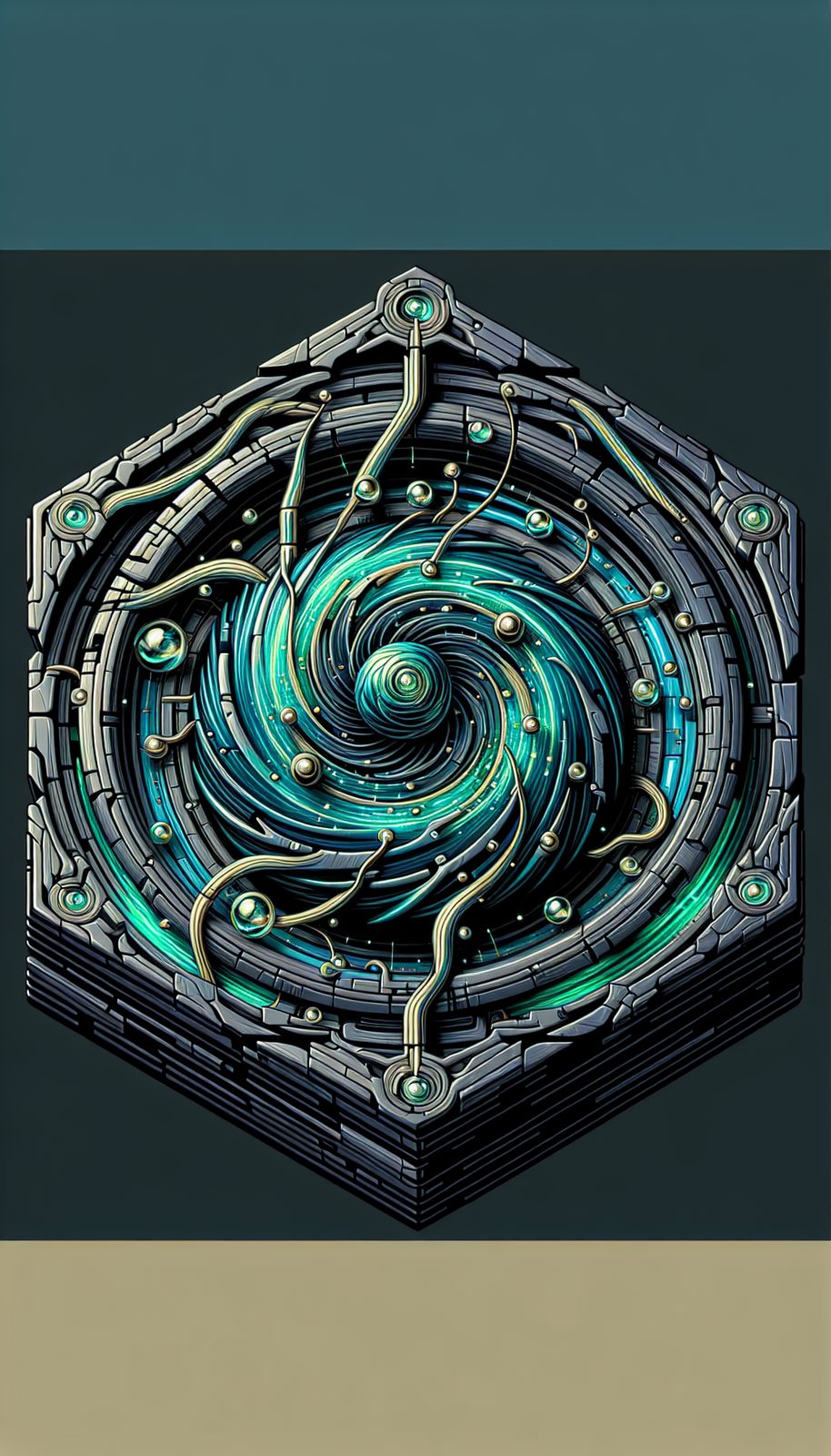Titanium-alloy chassis with glowing quantum veins, rotating gyro-core emitting low-frequency time dissonance, retractable neural interface spikes capable of forced system integration.