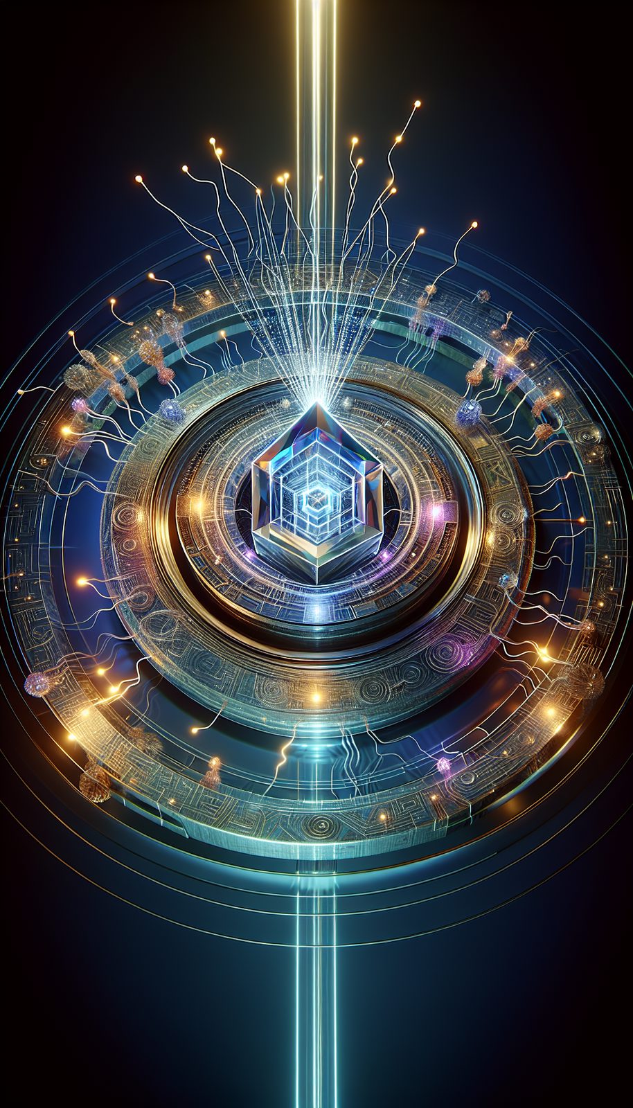 Pulsating fractal core changes hue with energy imbalances. Resonant crystalline filaments absorb chaotic emissions. Glyph-etched stabilizer rings project harmonic fields. UV-reactive fracture patterns indicate synchronization levels