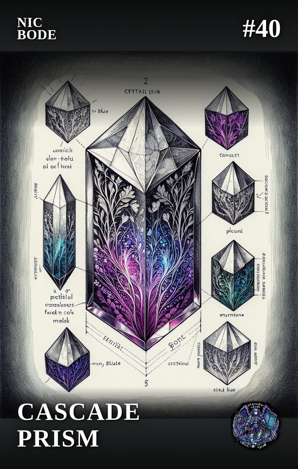 Born from the crystallized echo of reality's first fracture, the Cascade Prism formed when the initial Arcane Fracture split unified magical energy into ten distinct schools. It retains the memory of that primordial moment, holding within its faceted structure the blueprint of how pure magic divides into elemental, shadow, storm, illusion, decay, aether, spectral, growth, ice, and void energies.