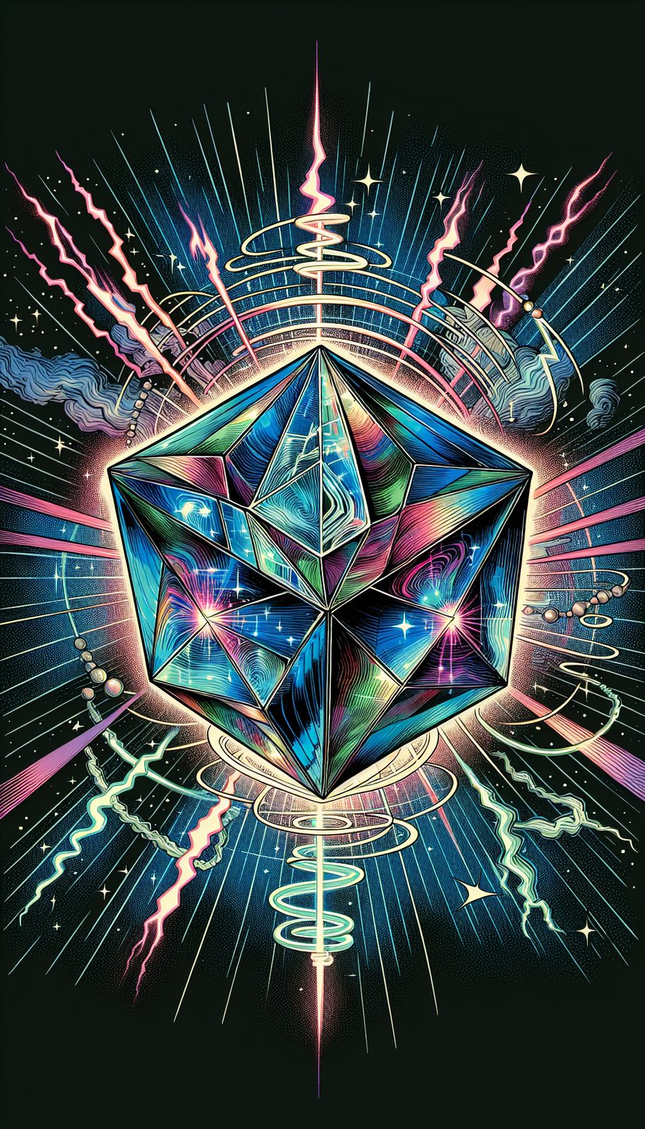 "When the Arcane Fracture went full Big Bang, ten magics collided in a cosmic remix. From that sick drop emerged Fractal Hymn, basically the universe's mixtape—ethereal beats pulsing through crystalline facets. Honestly, who coded this lore? A sentient Spotify algorithm? Now it vibes between realms, dropping stabilizing fire tracks. Will it ever find its DJ?"