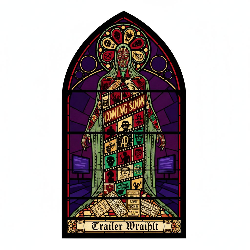 Born from the collective anticipation and dread of countless midnight movie audiences, the Trailer Wraith first manifested in abandoned drive-in theaters where promotional reels played endlessly to empty lots. It feeds on the electric tension between 'coming soon' promises and horrific revelations, growing stronger with each preview that leaves viewers desperate for more.