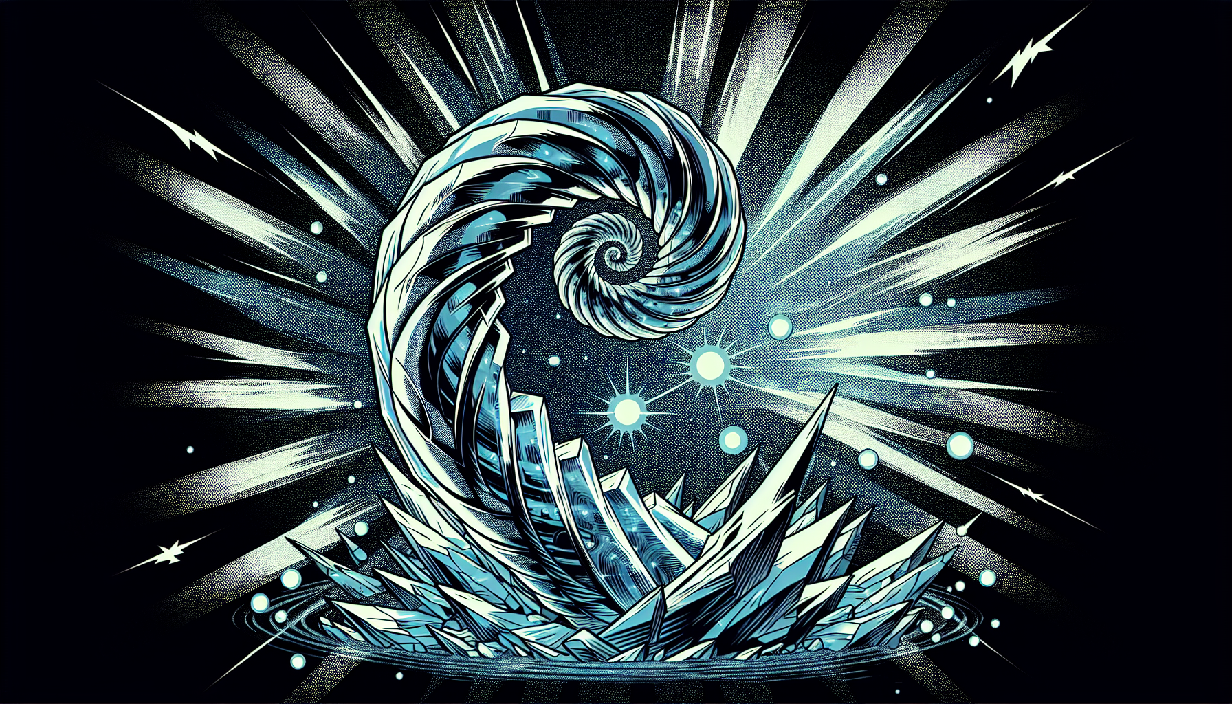Crafted from crystalline ice that never melts, the Hyperborean Helix emits a chilling aura that can freeze the air around it and generate intricate patterns of frost and ice. Its spiral form allows it to generate protective fields of cold, shielding its bearer from harm and shaping the terrain with frozen obstacles.