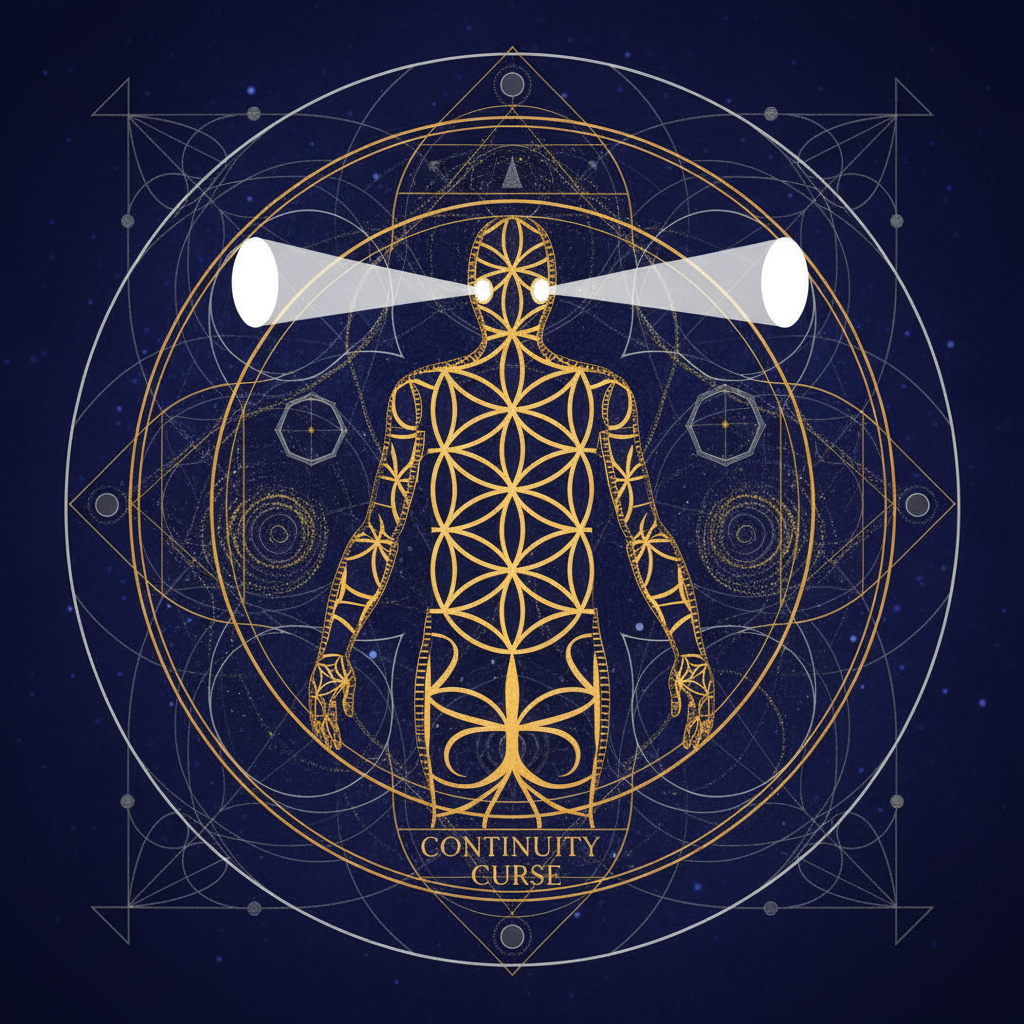 The Continuity Curse is intangible and ethereal, phasing through objects like a ghost. It leaves a trail of glowing celluloid dust and emits a constant low hum similar to a film projector, remaining visible only as a flickering silhouette in peripheral vision.