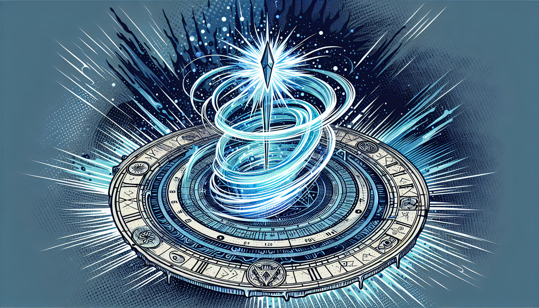 Crafted from crystalline ice that never melts, the Spectral Sundial takes the form of an intricately carved sundial, its surface etched with arcane symbols and runes. When exposed to specific celestial alignments or mystic energies, the artifact emits a ghostly blue radiance and begins to subtly influence the fabric of reality around it.