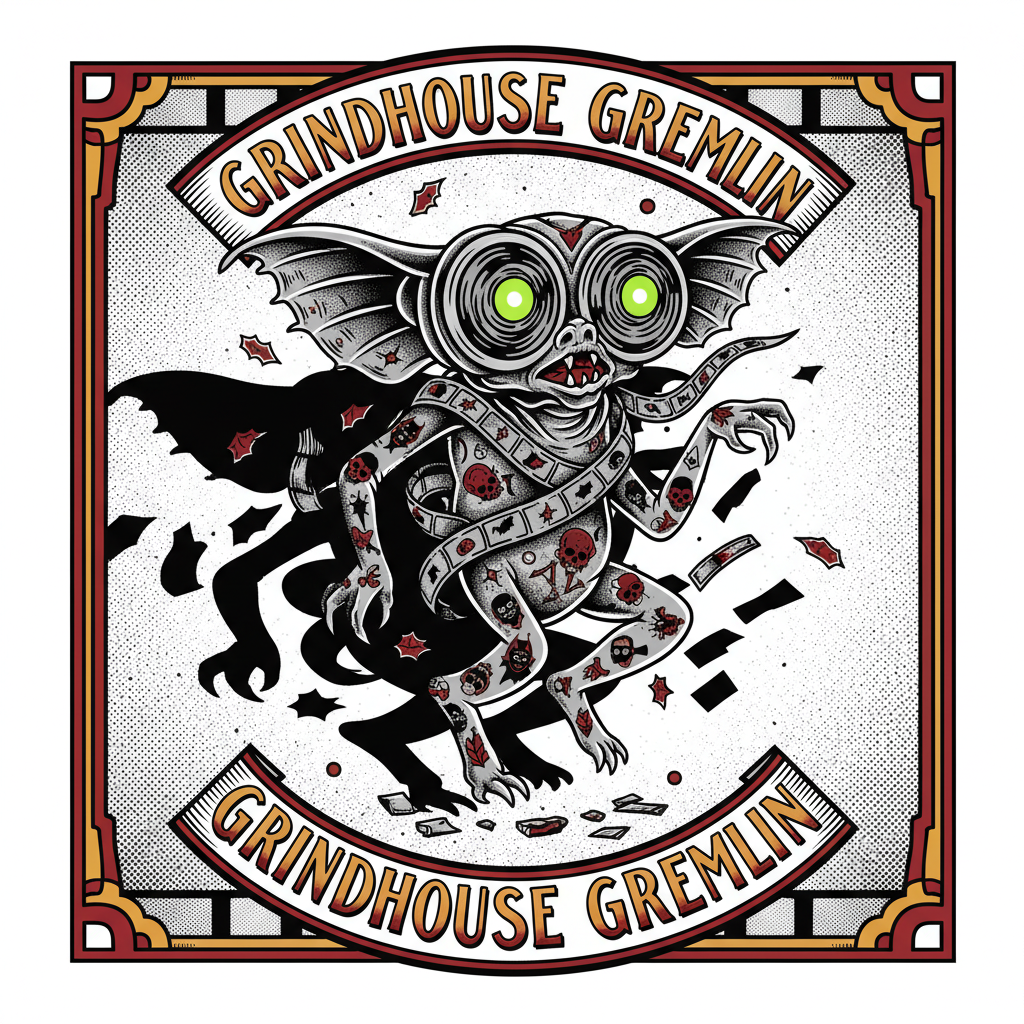 Created when a film projector overheated during a midnight marathon, the Grindhouse Gremlin was infused with the essence of every schlock film ever made, destined to haunt disc golf courses by introducing chaotic glitches that bridge different horror leagues.