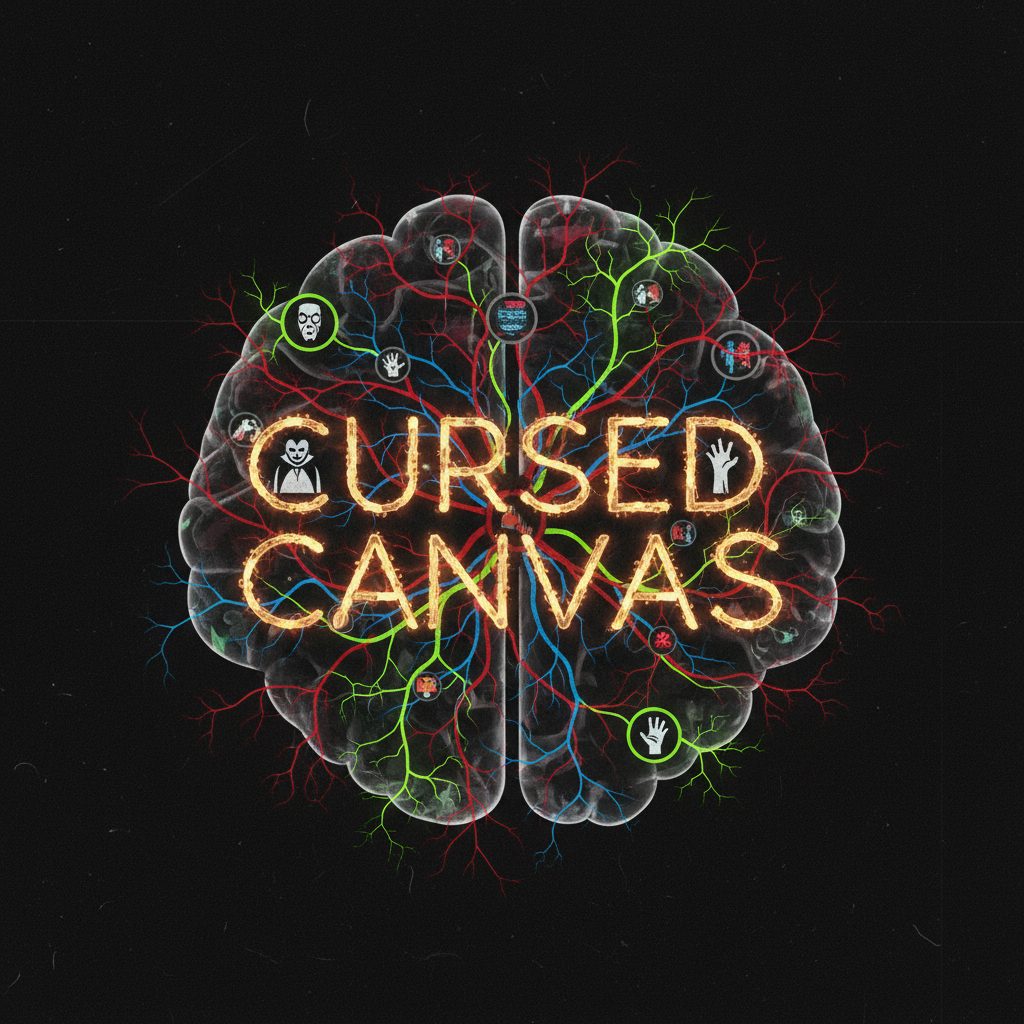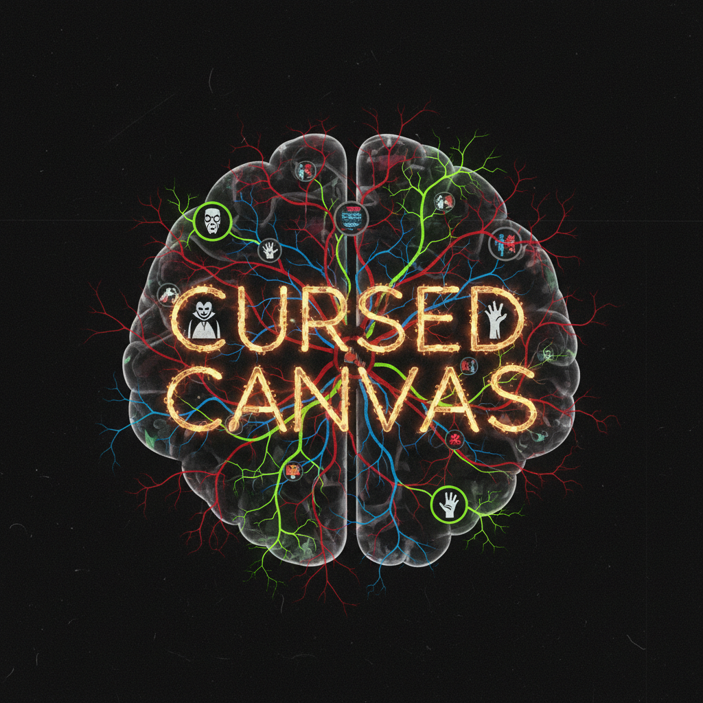 The Cursed Canvas can dynamically change its appearance to reflect the current horror subgenre, emits a faint, flickering glow like an old film projector, displays brief moving scenes of horror archetypes when touched, and is impervious to damage, ensuring it endures across all leagues.