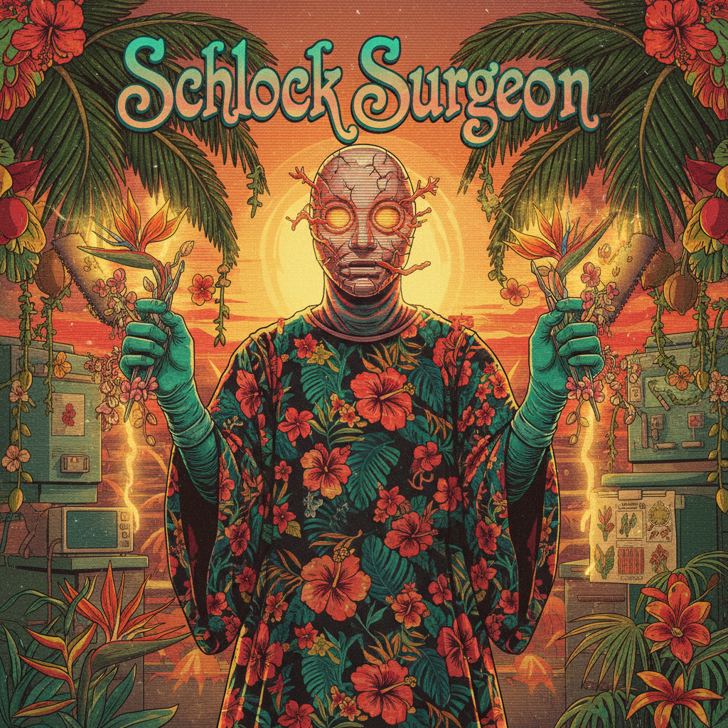 Born from the collective surgical nightmares of every medical horror B-movie ever screened at drive-in theaters, the Schlock Surgeon emerged when all grindhouse medical villains merged into a single entity. This supernatural fusion occurred during a midnight screening marathon where the boundary between celluloid and reality dissolved, creating the ultimate medical horror authority.