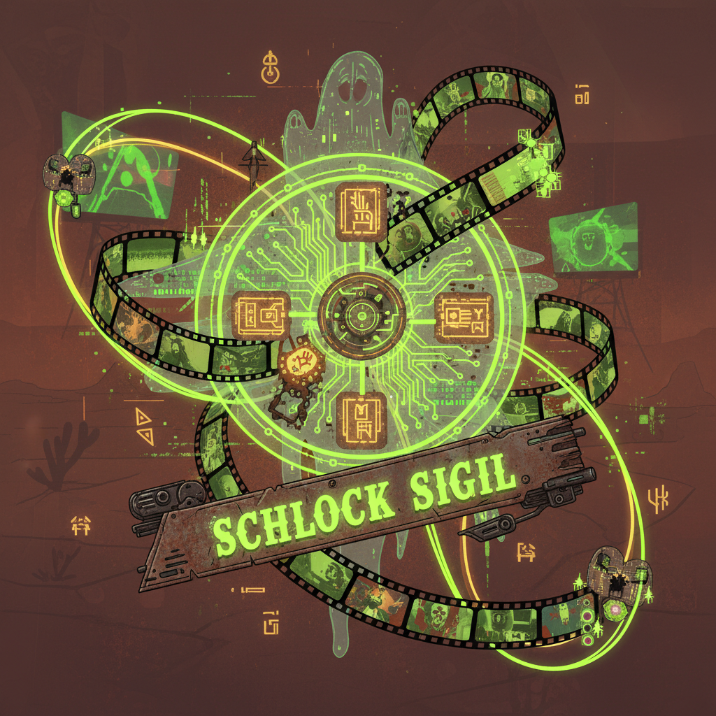 The Schlock Sigil was born from the very first splice of a grindhouse film reel, emerging as a physical manifestation of B-movie magic. It wandered through midnight screenings and drive-in theaters, gathering the essence of exploitation cinema. Now, it is destined to guide horror narratives across all venues in the Horror Hall of Fame series.