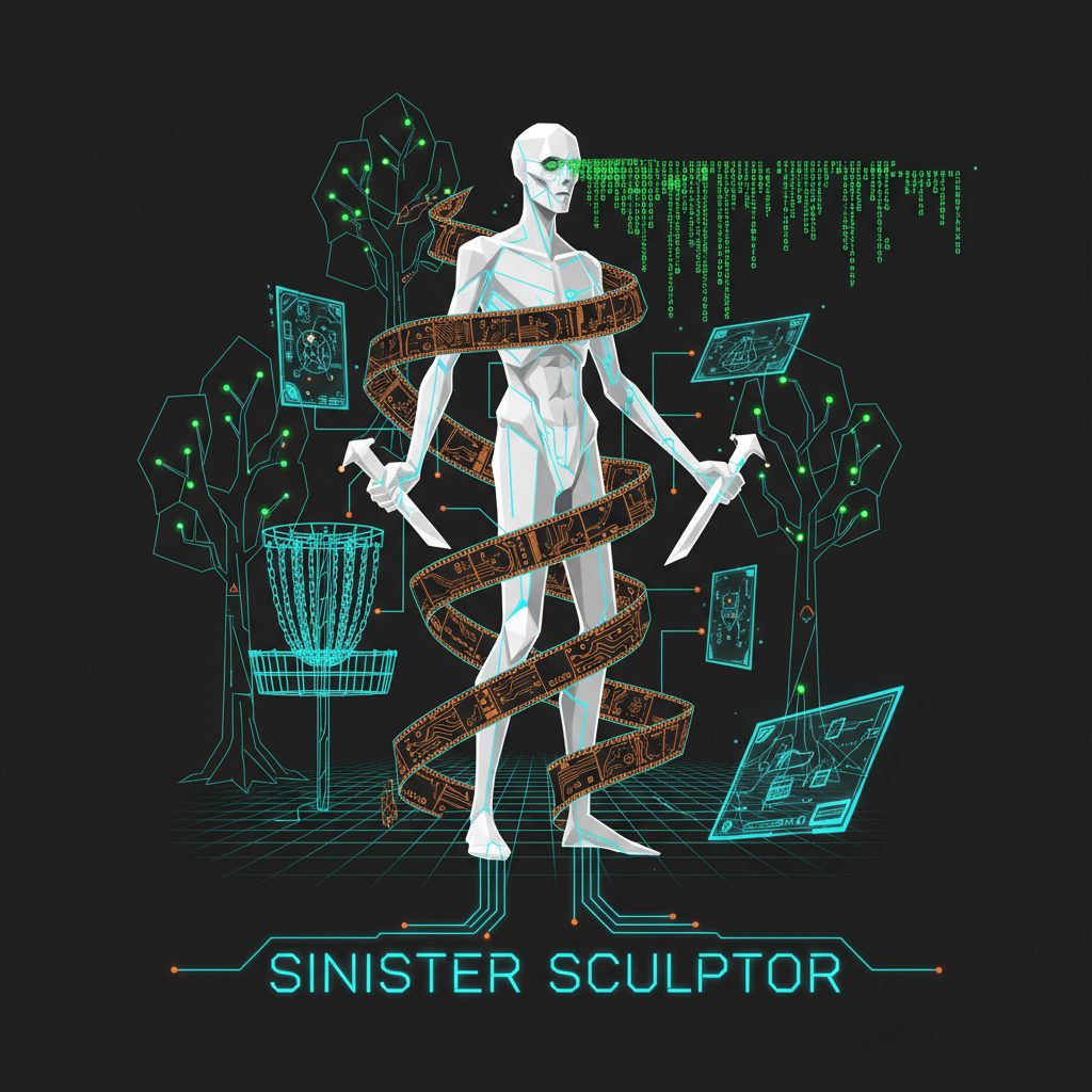 The Sinister Sculptor can manipulate earth, wood, and other materials to form horror structures, leaving behind sculpted remnants that glow with an eerie green light. It emits a low, grinding sound like a film projector when active, and its tools, made of ossified fear, allow it to reshape course features seamlessly.