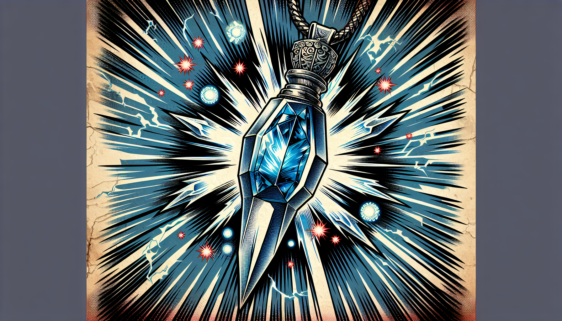 The pendant is crafted from translucent glacial ice that refracts light in mesmerizing prismatic patterns. Intricate runes and symbols are etched into its surface, their meanings lost to time. At its center, a deep indigo crystal pulses with ethereal energy, resonating with the mystical forces at work on the course.