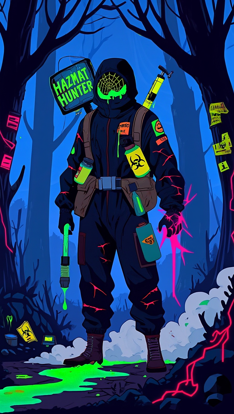 Encased in a scarred hazmat suit, it wields pressurized decon sprayers that atomize corrosive neutralizers into suffocating clouds, and a taser-wand calibrated to bio-signatures flagged as noncompliant. Its visor glows toxic green from a cracked HUD, scrolling hazard glyphs and false positives that justify pursuit. Breathing filters emit a steady mechanical rasp, and its Geiger rhythm spikes whenever mutagenic pockets or living vectors approach.