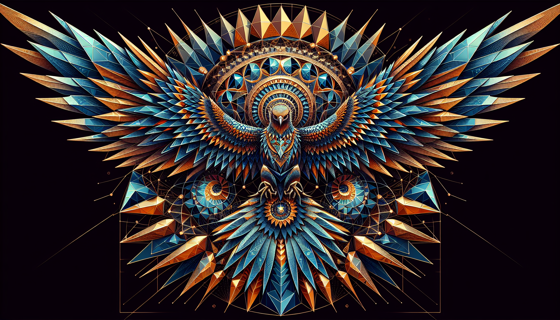 A multifaceted crystalline artifact composed of sharp geometric edges and intricate patterns that shift with the light. Its form evokes the talons and beaks of raptors through angular shapes. Mystical energies resonate within, granting the wielder enhanced aerial perception and an intuitive sense of trajectory arcs.