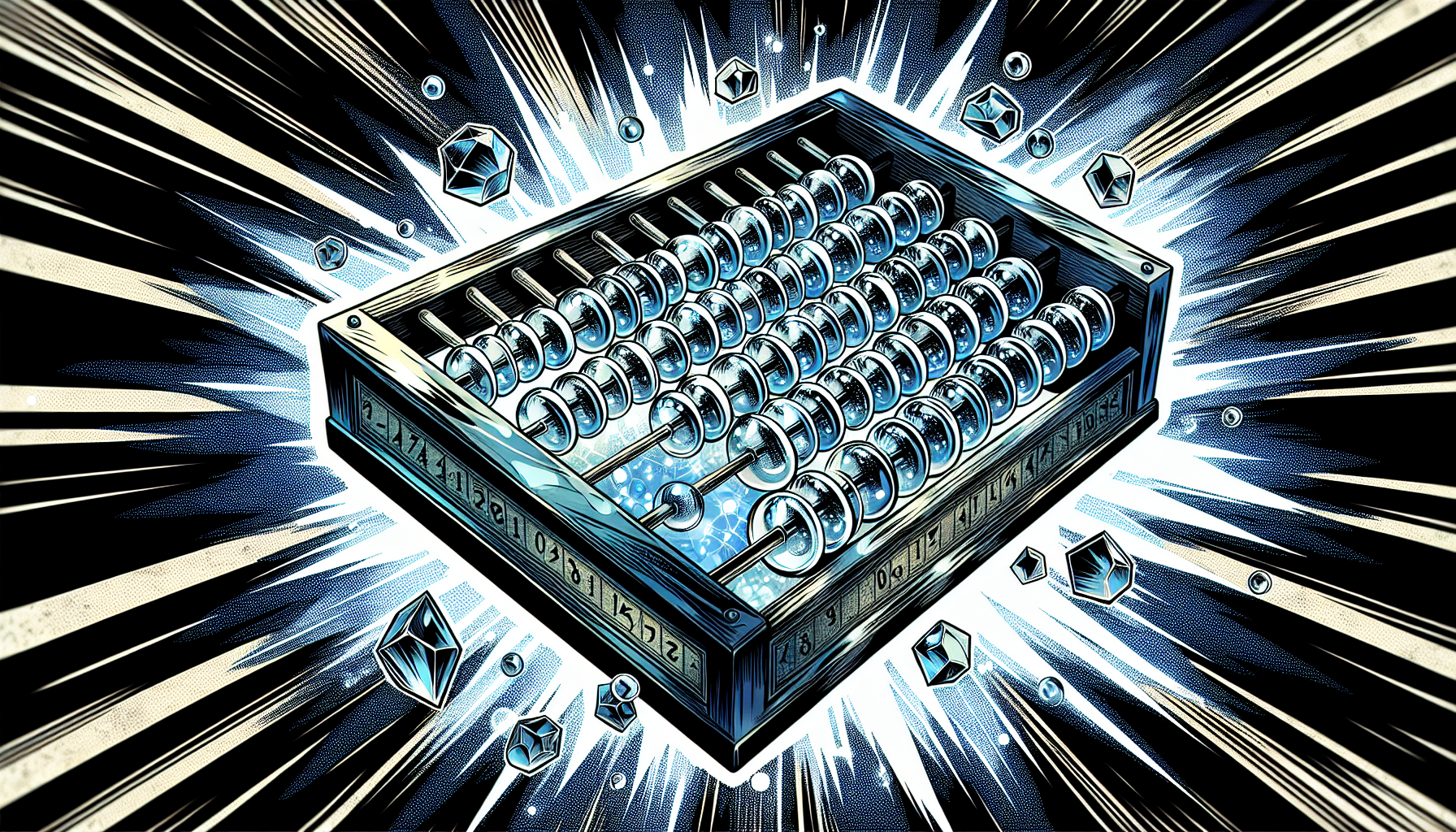 Carved from a single piece of translucent glacial ice, the abacus is etched with intricate runes and mystical symbols. Its crystalline form refracts light in ethereal patterns, and its beads seem to move of their own accord, shifting with each supernatural calculation. The artifact emanates a palpable aura of frozen power.