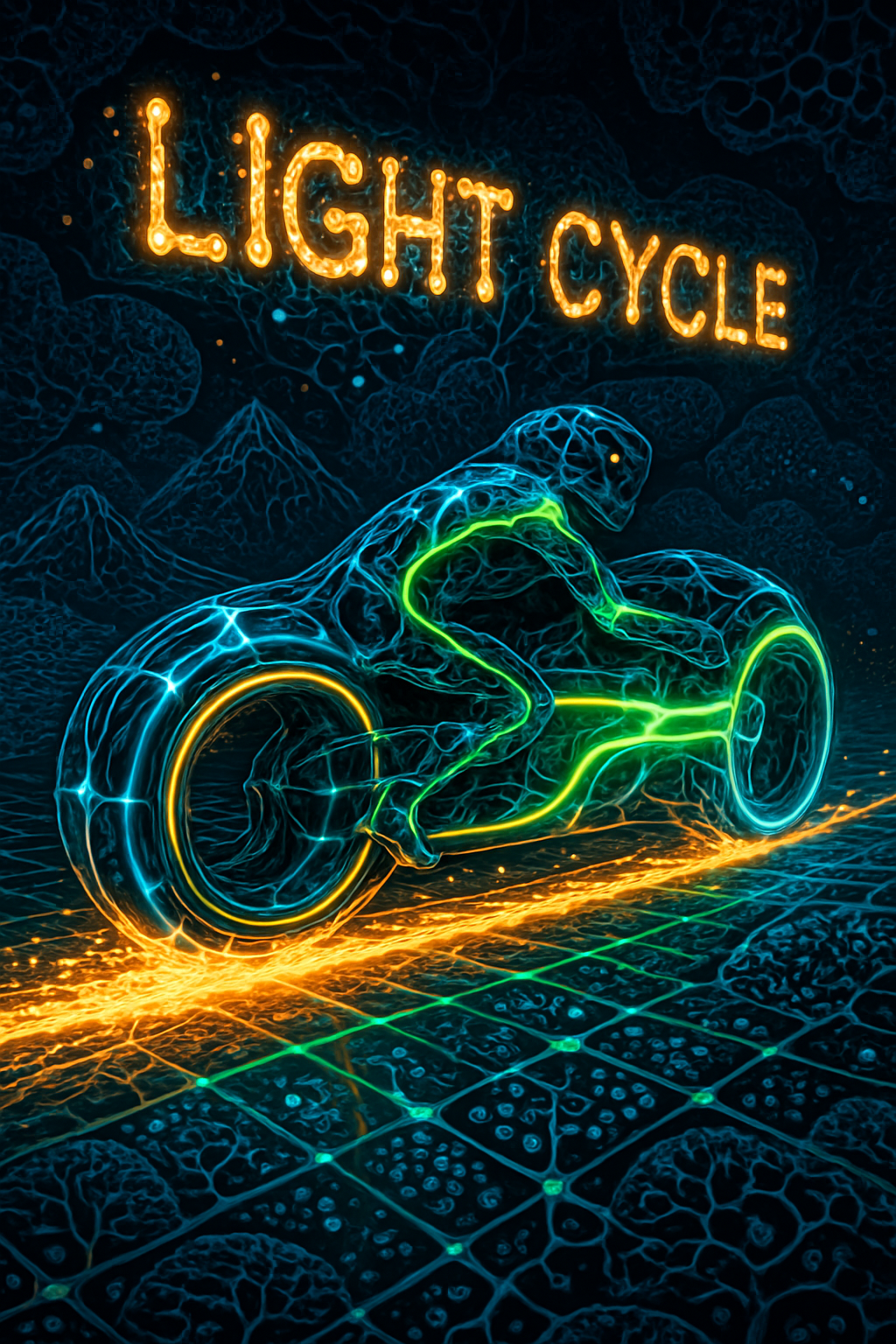 Forged when a sick drive collided with a glitching Tron cabinet, the residual energy surge booted up Light Cycle from the digital void into our wireframe circuits. Now it just leaves neon afterimages to mock us all. I hate how my gills are literally burning from all this glow.