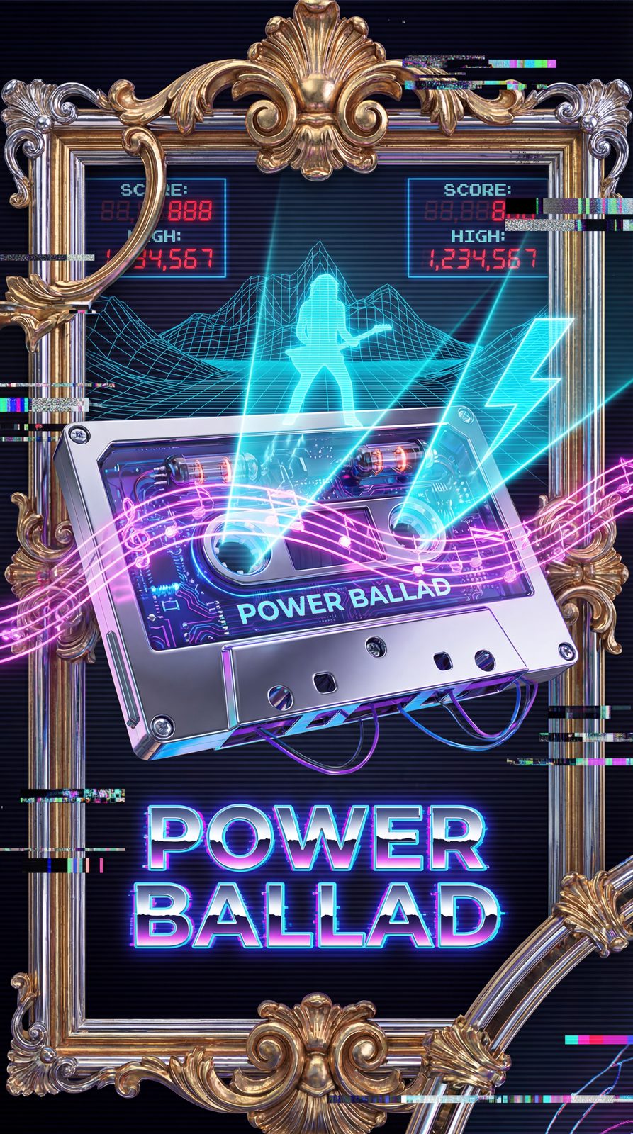 Forged in the magnetic tape of thousands of 80s movie soundtracks, the Power Ballad emerged when the series' first ace was thrown, its frequency resonating with decades of cinematic triumph to become a living anthem within the VaporGrid that scores every tournament.