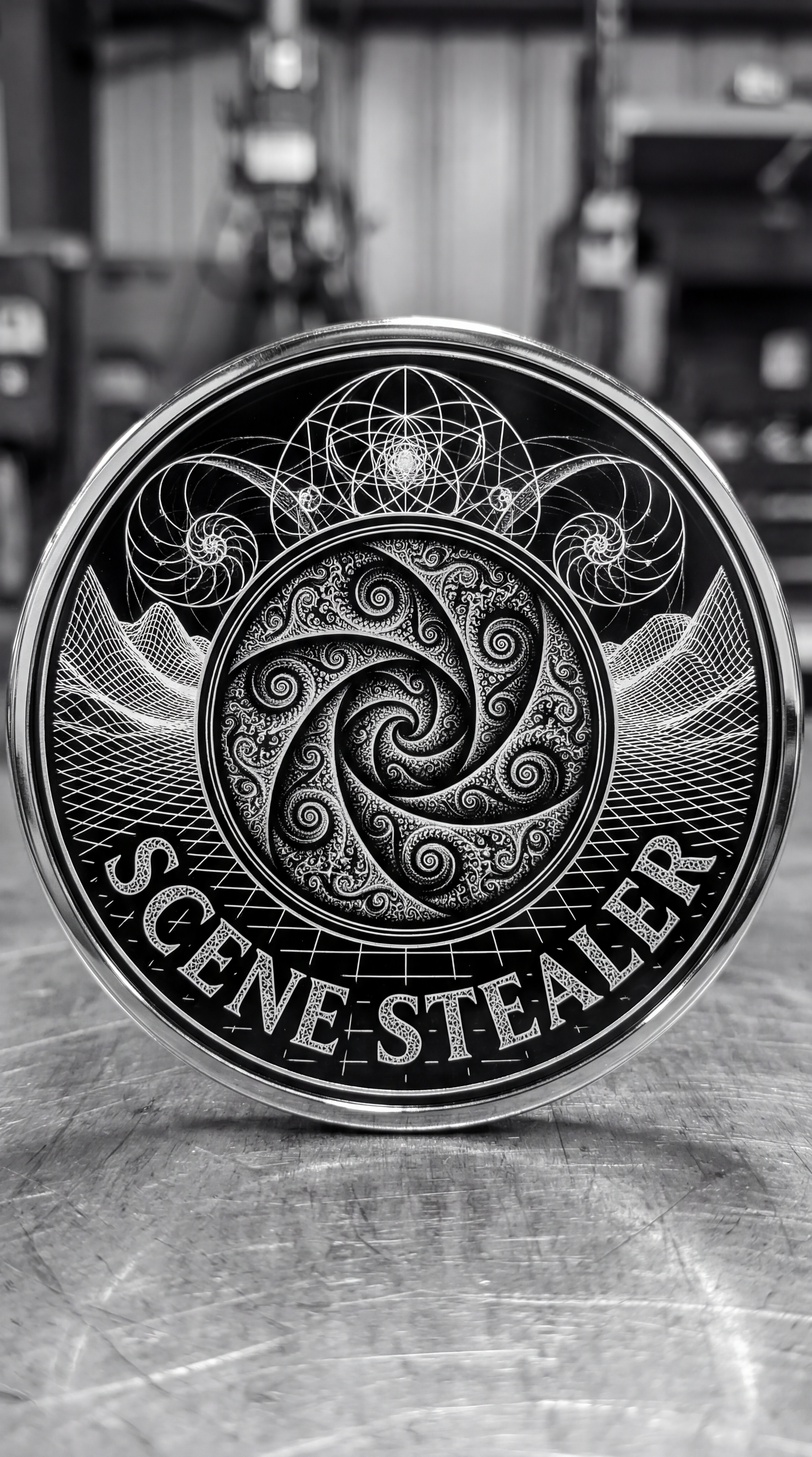 The Scene Stealer originated in the VaporGrid when a film editor's perfect cut of an epic disc golf throw fused with neon data streams, giving sentience to the concept of scene-stealing and embedding it into the competitive fabric of the series.
