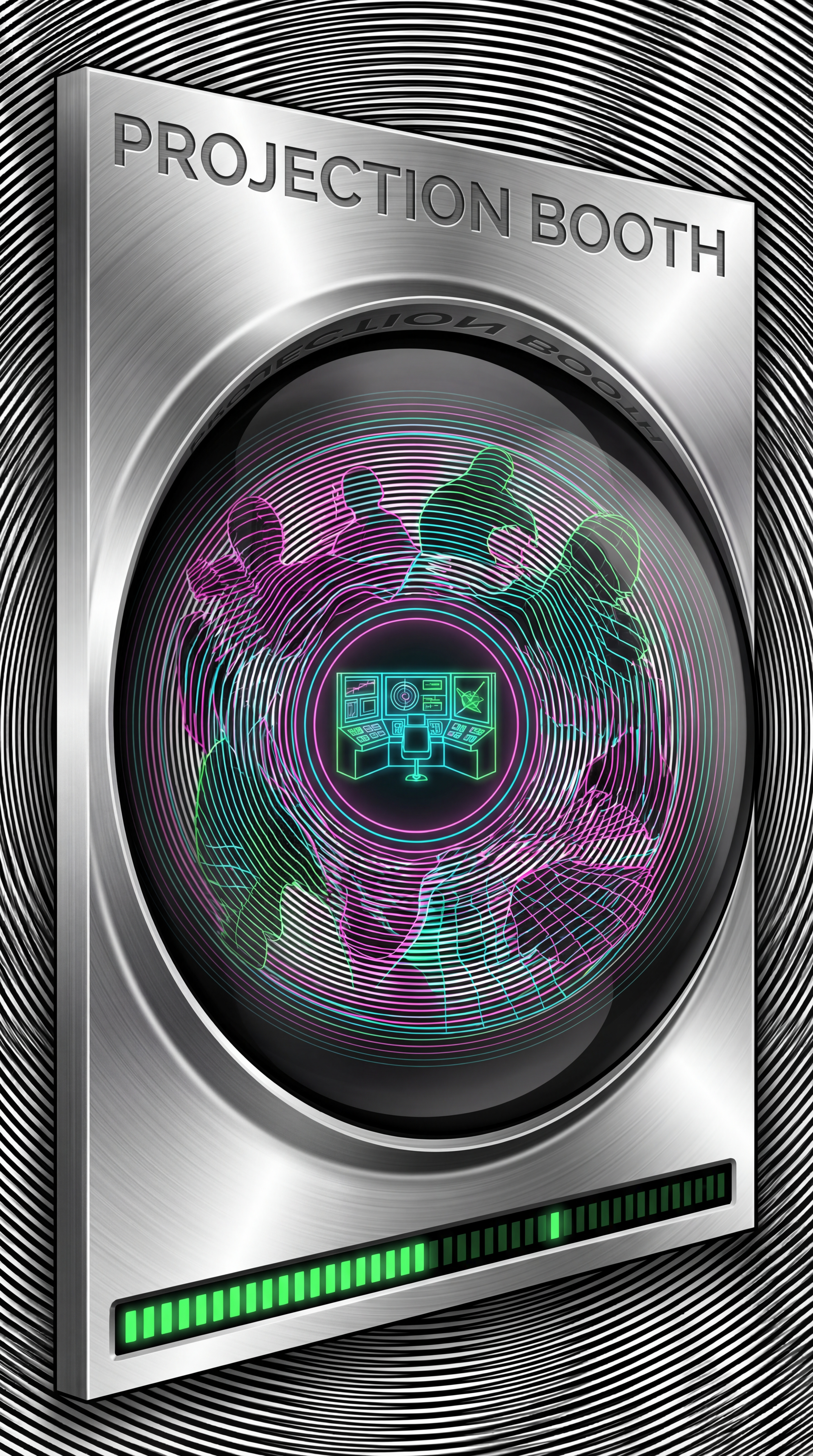 When the VaporGrid simulation first booted, its disparate 80s movie modules refused to synchronize. The chaotic data storm coalesced into a singular, stable structure—a chrome-and-neon Projection Booth—that now forces the ten leagues into a coherent cinematic signal.
