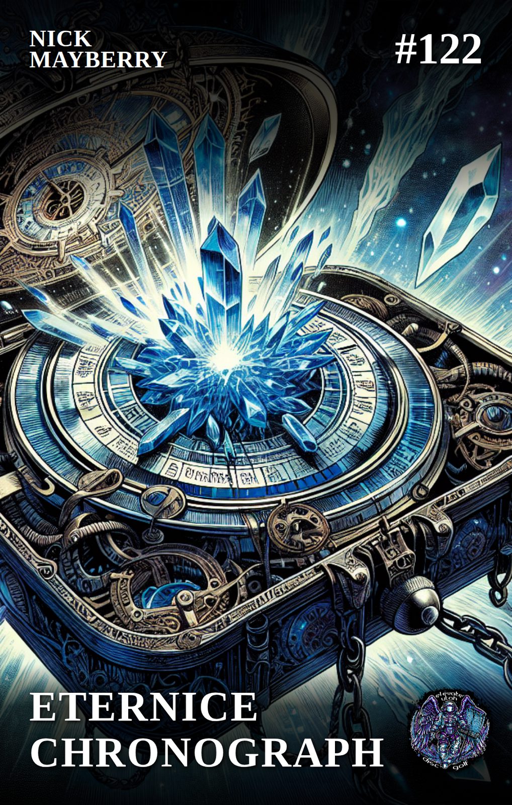 The Eternice Chronograph takes the form of an ancient, weathered timepiece with a rugged metal casing and a crystal face that refracts light in prismatic hues. Its surface is etched with mysterious glyphs and patterns that resemble disc flight paths and course obstacles. The Chronograph's inner mechanisms are powered by the eternal ice crystal, allowing it to measure the precise duration between supernatural events with unwavering accuracy.