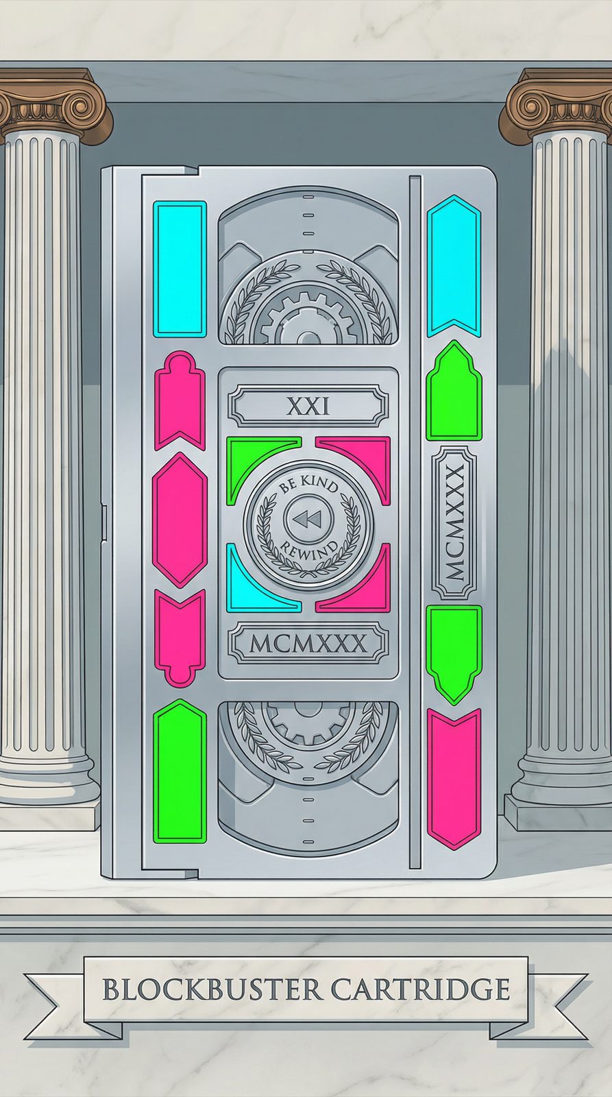 Born from the collective memory of Friday night video store trips, the Blockbuster Cartridge emerged as the VaporGrid's librarian, cataloging each league as a rentable experience and enforcing the sacred rule: Be Kind, Rewind—or face narrative consequences.