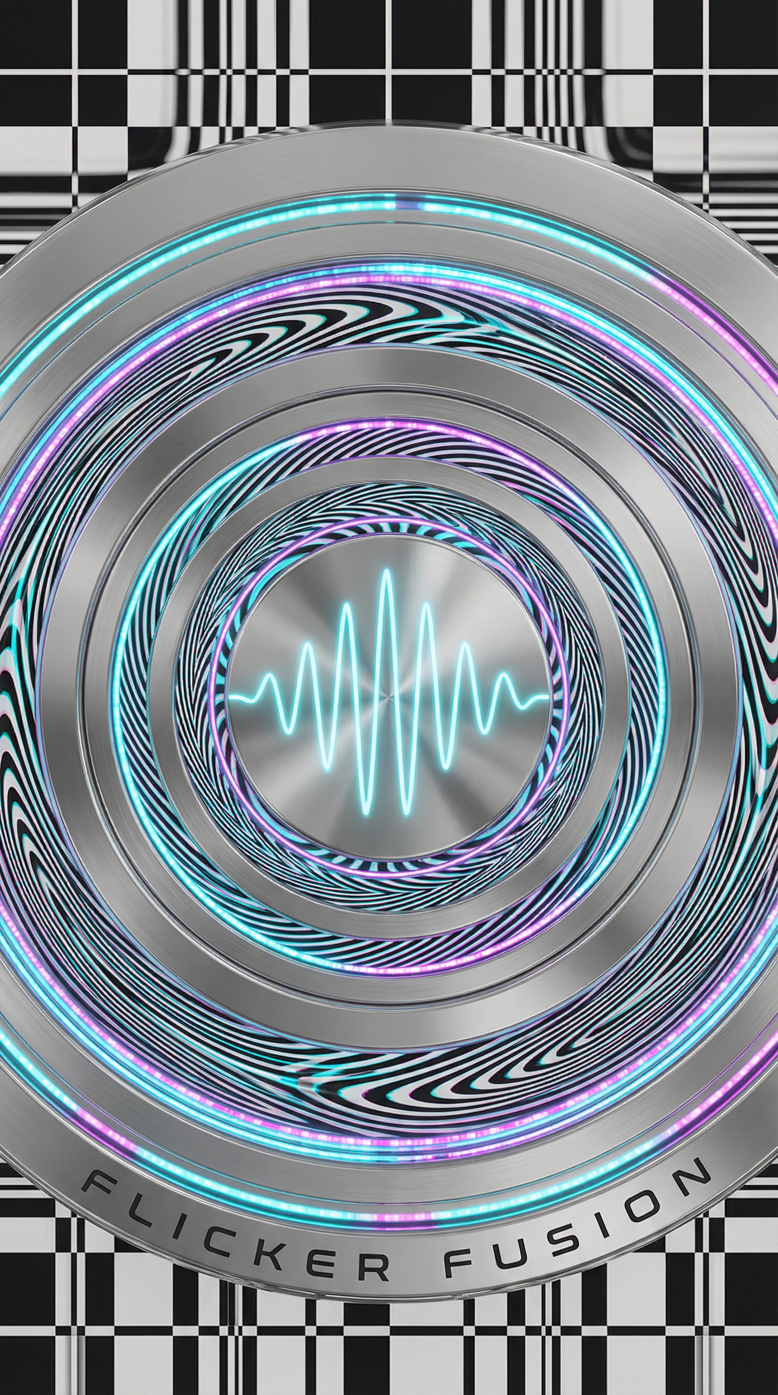 Manifests as a chrome stroboscopic disc that pulses at exactly 24 cycles per second, matching classic film projection rates. Its surface displays real-time fusion stability readings across all ten leagues through shifting neon wavelengths—stable fusion glows cyan, approaching critical desync flashes magenta. Emits a barely perceptible hum at the threshold of human hearing, the auditory equivalent of visual persistence. When held, it synchronizes the bearer's perception to the VaporGrid's master optical frequency, allowing them to consciously perceive the individual frames of reality that normally blur into continuous experience.