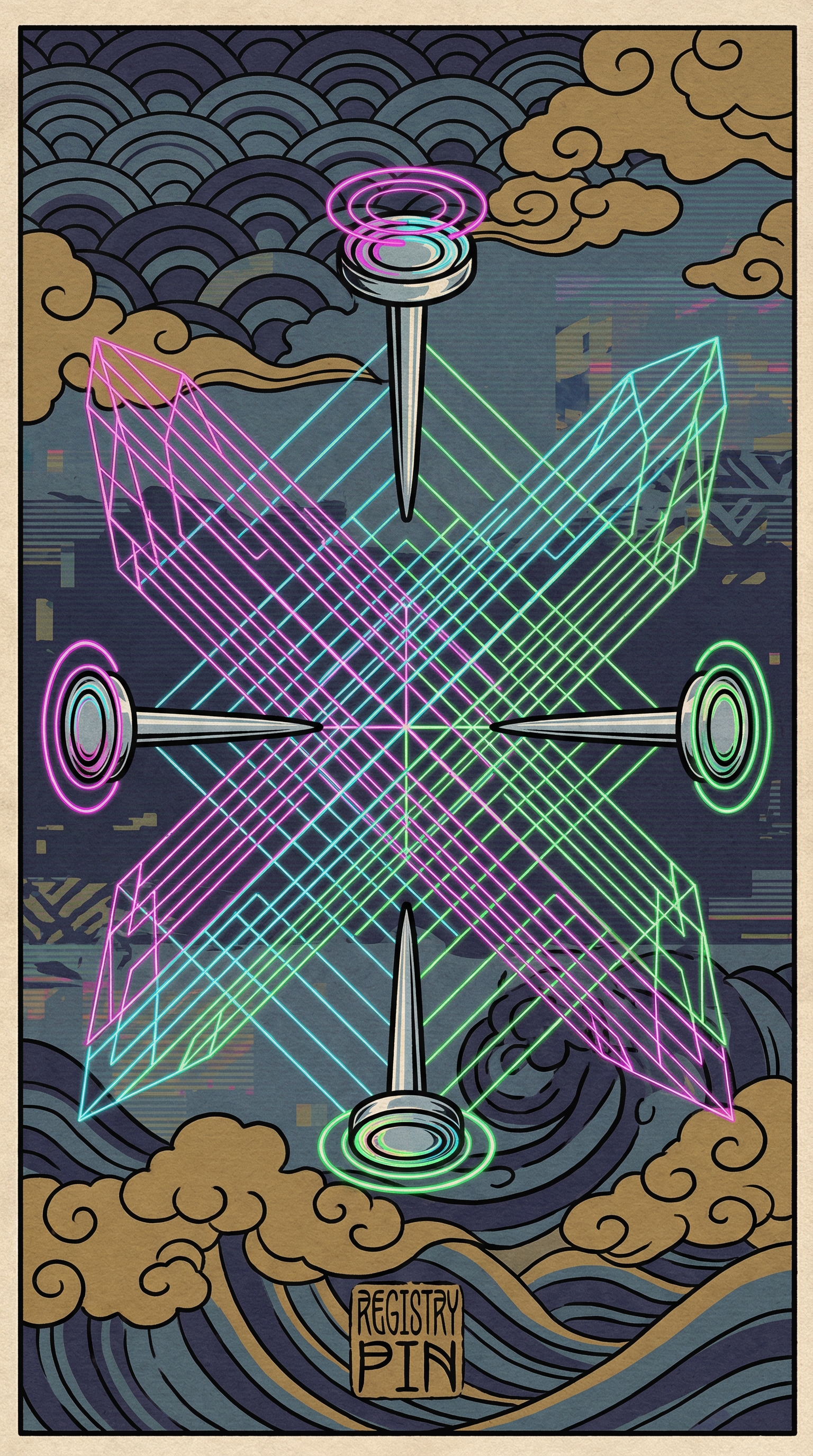 adjusts headset, the neon crosshairs in the booth flickering Welcome to the VHS tape of creation, where even reality needs a calibration check. Born from a master editor’s panic when two incompatible 80s realities threatened to tear the simulation apart through sheer misalignment, the Registry Pin didn’t just appear—it materialized as the universe’s ultimate stabilizer. Four chrome pins, cardinal points, projecting infinite wireframe grids. Its job? To maintain sub-pixel accuracy across ten different league realities, pulsing with verification patterns to stop the narrative from corrupting. Its personality? The petty, precise attitude of a cosmic stage manager who knows the whole show falls apart without its perfect registration. It doesn’t just align frames; it judges them.
