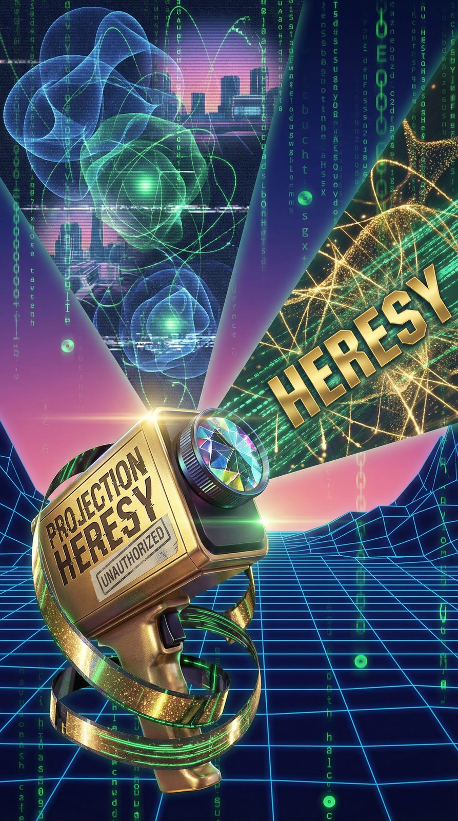 Manifests as a dual-beam projector casting overlapping images—one showing the Chaintrix's official outcome, the other revealing the heretical alternative. Ghost frames flicker in the damaged celluloid between moments, visible only as lens flare and tracking line distortion. The light it casts operates at wavelengths the simulation's sensors weren't designed to capture, making its projections technically invisible to the system's official records. Its beam leaves permanent ghost images burned into surfaces and retinas alike.