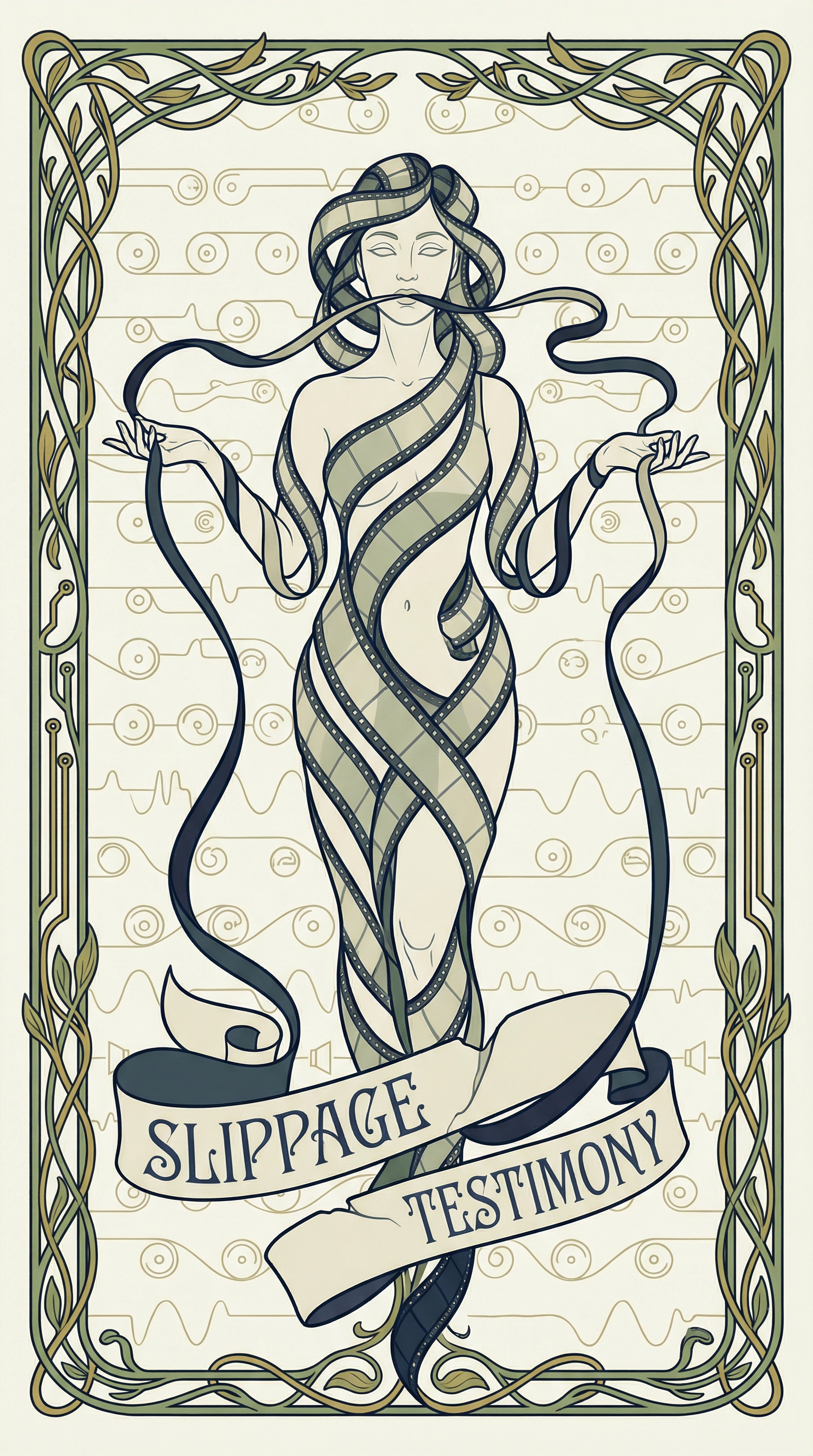 Manifests as progressive audio/video desynchronization that worsens with each viewing, creating timing gaps that function as attendance timestamps. Leaves unique mechanical signatures in magnetic tape substrate - the more frequently a player attends, the more distinctive their slippage pattern becomes. Produces audible friction testimony during playback, converting mechanical wear into sonic proof that the tape physically passed through the machine. Each playback adds microseconds of additional slippage, making the testimony self-reinforcing and creating cumulative evidence that spans entire simulation seasons.
