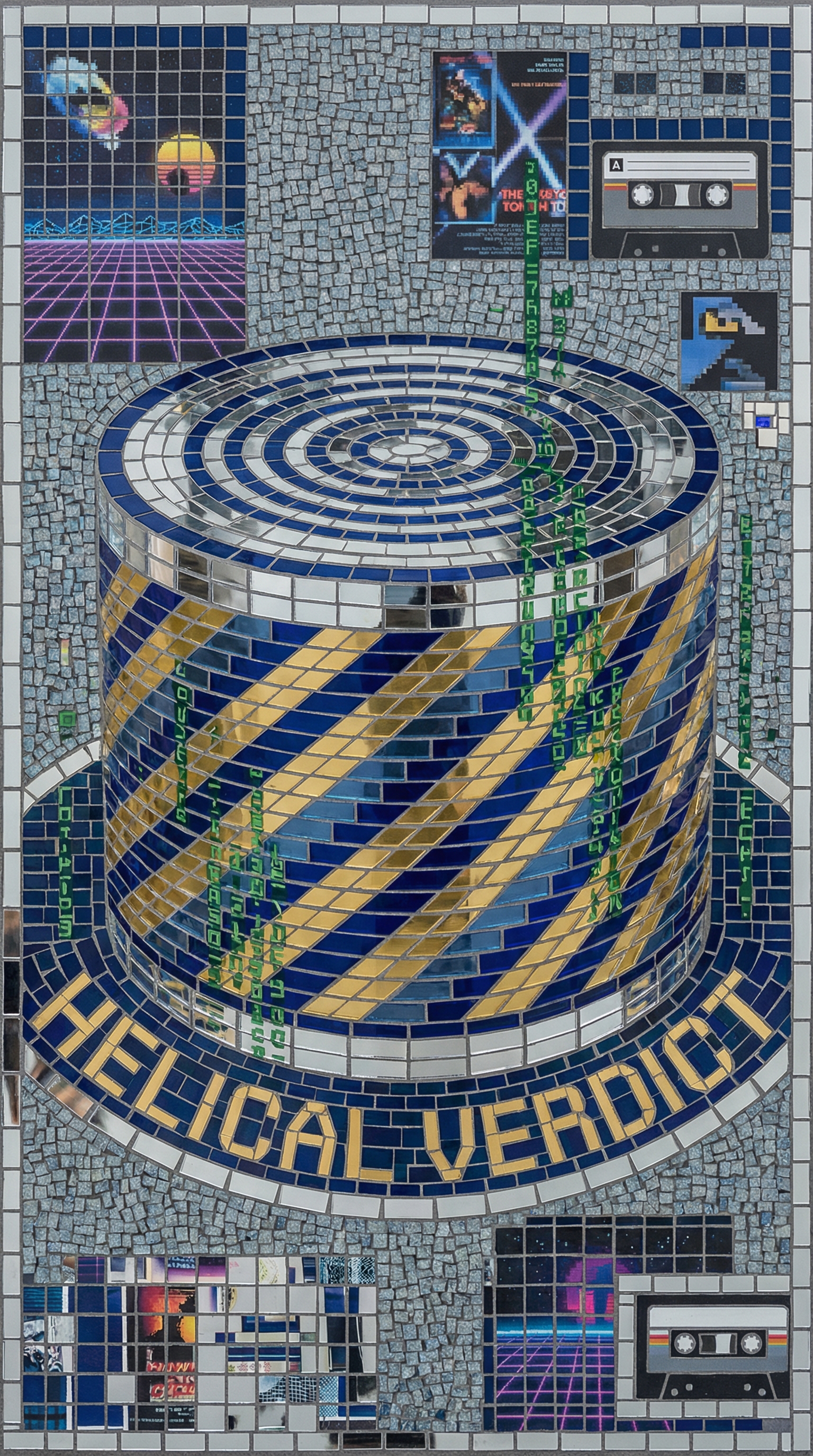 Rotates at constant 1800 RPM, creating exactly 30 verdict-frames per second of binding judgment. Leaves diagonal helical scan patterns on all recorded evidence, the angle of each track determining the clarity of survival proof. Emits the high-frequency whine of a spinning video head—the sound of verdicts being rendered in real-time. Physical form appears as a rotating drum assembly wrapped in rainbow-distorted chrome, its surface etched with scan lines that pulse between Blockbuster gold and midnight blue.